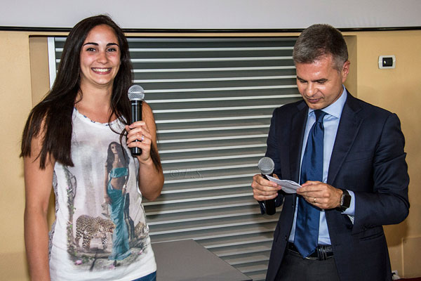 Quindi in sequenza gli interventi di alcuni degli autori del libro, l’addetto stampa della società Mauro Vigna, i giornalisti Benedetta Montagnoli della Gazzetta di Mantova e Sergio Martini della Voce di Mantova, Matteo Ferrari della Provincia di Cremona. Tra un intervento e l’altro ecco le sorprese con l’ingresso in sala dapprima del condottiero di questa impresa rosa, mister Davide Mazzanti, che a fatica ha rotto l’emozione per l’accoglienza (quasi due minuti di applauso per lui) prima di poter salutare e raccontare aneddoti e momenti importanti della stagione dello scudetto. A ruota l’hanno seguito la moglie Serena Ortolani, che ha spiegato il significato di uno scudetto ottenuto da ousider, Alessia Gennari, autentico pilastro della squadra campione d’Italia capace di coronare in questa stagione la propria rinascita sportiva dopo i momenti bui e di paura che sembravano pregiudicarne la carriera, e Marika Bianchini, la bombardiera e l’artista, tanto potente in campo quanto delicata ed impeccabile nel manifestare la sua passione di disegnatrice. Tanti personaggi, ancora una volta incredibili nei loro interventi nel rivelare le grandi doti umane che anche nella trionfale stagione rosa avevano saputo esternare, visi ed amici che non rivedremo più in maglia rosa ma che per come hanno saputo vivere questa parentesi della loro carriera sportiva rimarranno per sempre nel cuore dei tifosi locali speranzosi di poterne incrociare nuovamente in futuro (mai dire mai), non solo da avversari, le strade.