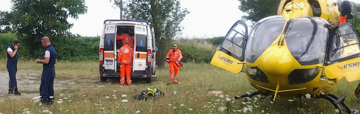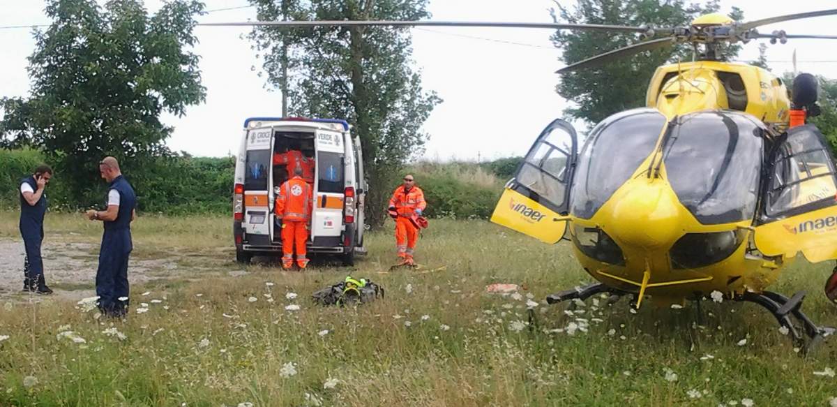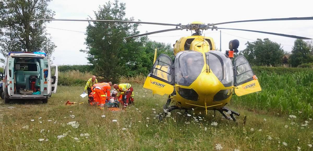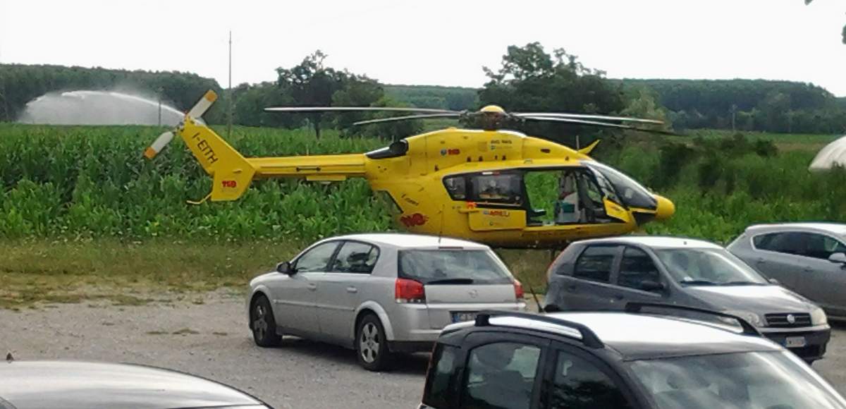 Nella fotogallery, elisoccorso, automedica, ambulanza e Carabinieri a Dosolo