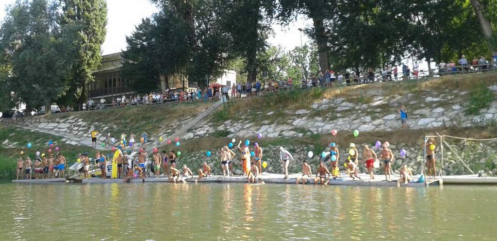 Scongiurato il rischio della secca e di un inquinamento impennatosi col calare della portata del Po, la nuotata è stata baciata anche dal sole ed è stata assistita da personale qualificato in acqua e da decine di curiosi radunatisi intorno alle ore 10 lungo la strada Alzaia, in zona lido Po, dove si trova la zattera che fa da trampolino ormai tradizionale per i nuotatori fluviali. Chi a bracciate, chi facendosi trasportare dalla corrente, tutti i partecipanti muniti di palloncino colorato, sono approdati all’attracco dell’Eridanea, che dista all’incirca un chilometro. Il primo è stato Alessandro Rosa di Quattrocase, che bissa il risultato dello scorso anno. Ma a dominare la scena all’arrivo sono stati i sorrisi di tutti: foto di rito, brindisi, battute e racconti dei più anziani che entreranno nel bagaglio di un’esperienza nuova per i più giovani, divertente e un po’ goliardica per i ‘veterani’ del saggio natatorio di Ferragosto.
