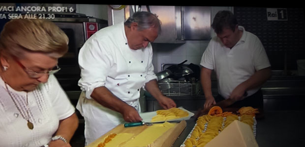 Subito dopo, nel viaggio lungo l’asta fluviale, la linea è passata a Daniela Ferolla, che ha intervistato Arneo Nizzoli, ricordando le presenze importanti che hanno popolato in passato il ristorante di Villastrada: da Cesare Zavattini a Mario Soldati, solo per citare due big della cultura italiana. Anche in questo caso le immagini sono state registrate dal 23 al 26 settembre scorso. Il momento clou, però, è arrivato quando Arneo (nominato Imperatore della Zucca dalla conduttrice) e Daniela, trasferitisi dall’argine in un campo di zucche appositamente preparato a pochi decine di metri dal ristorante Nizzoli, hanno mostrato grazie anche all’ausilio del dottor Ciro Vestita, esperto in nutrizione e nelle proprietà nutritive dei prodotti della terra, quanto sia consigliato l’utilizzo della zucca in cucina per le sue capacità benefiche e anche dietetiche. Nizzoli ha infine precisato le caratteristiche delle varie tipologie di questo frutto, offerto dalla nostra terra. Non poteva ovviamente mancare la parentesi dedicata ai tortelli di zucca, con la registrazione in cucina della moglie e dei figli di Arneo impegnati ad impastare e a confezionare questo delizioso primo, decisamente un cult in tutto il comprensorio e che domenica si è fatto una bella pubblicità in tutta Italia.