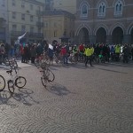 CASALMAGGIORE – Se l’elemento caratterizzante del comprensorio Oglio Po è l’acqua, allora ecco che è possibile paragonare la grande Marcia per il Clima andata in scena domenica mattina a Casalmaggiore a un grande fiume di persone, arrivate da vari comuni proprio come gli affluenti fanno con il Po e ritrovatesi davanti alla stazione ferroviaria casalese, per giungere infine in piazza Garibaldi, davanti al municipio, fulcro della manifestazione dalle ore 11 in avanti. Un mare, anzi come detto un fiume, di biciclette e striscioni, in primis: questo il colpo d’occhio per chiunque transitasse dal centro maggiorino.