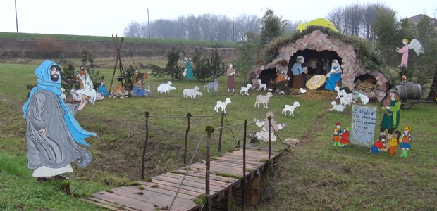 Spostandosi verso Motta, e senza lasciare l’argine, non mancano casi di presepi molto singolari nella costruzione e realizzati in questo caso da privati cittadini: uno in particolare sorge sopra un carro con la scritta di auguri dedicata a tutta la popolazione. Presepi privati e pubblici, per così dire, con la particolarità di essere ben visibili perché all’aperto e dunque sottoposti all’attenzione e al plauso dei passanti. Lo stesso dicasi per il presepe realizzato sotto il municipio, in pieno centro per non fare mancare anche al mondo amministrativo locale il riferimento al Natale. Lo stesso dicasi per l’oratorio di Motta Baluffi, ambiente nel quale la rievocazione di Betlemme e della Notte Santa è quasi doverosa. A cimentarsi, peraltro, sono stati anche i più piccoli, con l’asilo di Motta che accoglie da un paio di settimane le opere dei bambini aiutati dalle maestre.