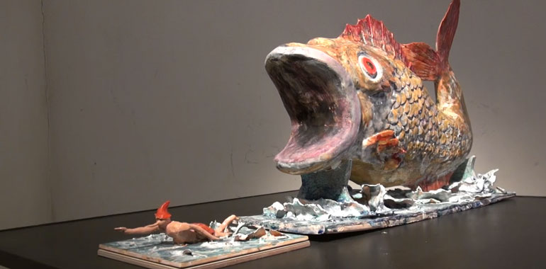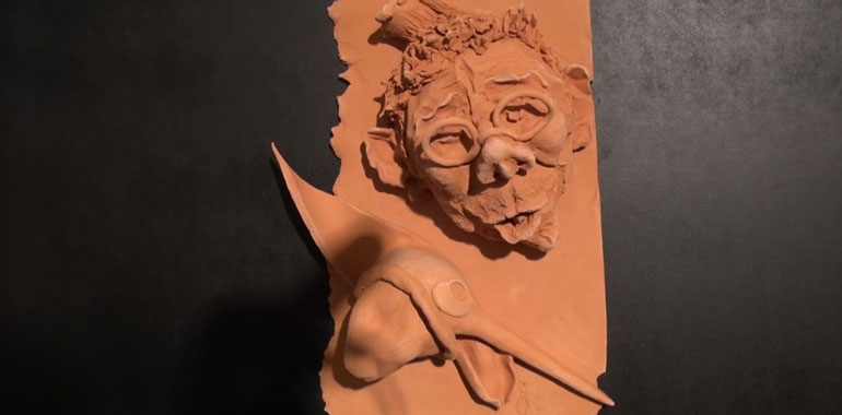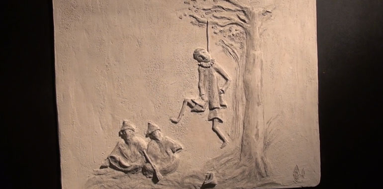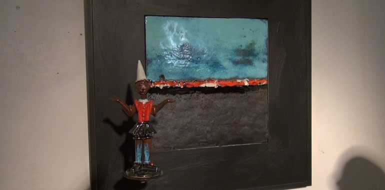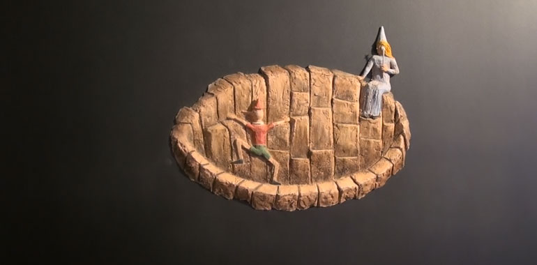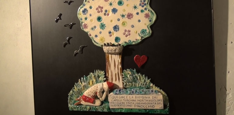 Un Pinocchio vissuto e raccontato diversamente, riprendendo scene clou della favola di Collodi, raccontando sensazioni e movimento il tutto, con la ceramica intesa quasi come una pellicola filmica.