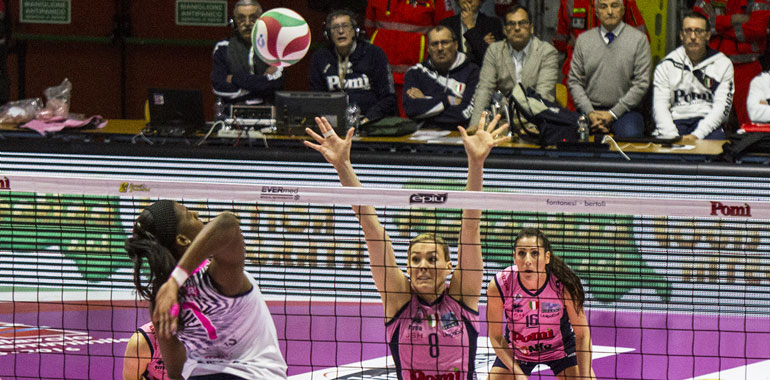 Terzo match in sette giorni per la Pomì Casalmaggiore: dopo i successi con Modena, 3-1 al PalaRadi, e Bolzano, 3-0 al PalaResia, le rosa conquistano tre punti anche con la Savino del Bene.