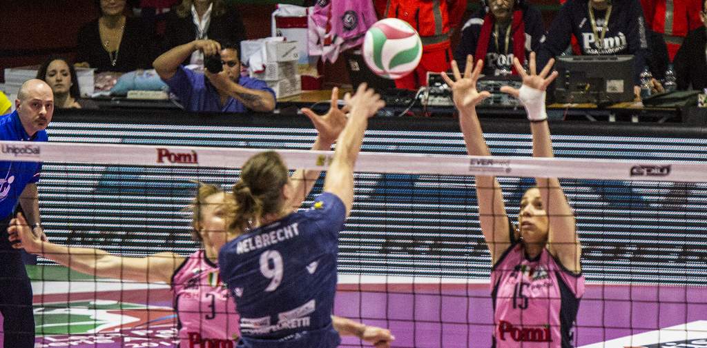 POMI’ CASALMAGGIORE: 1 Bacchi, 3 Lloyd, 5 Sirressi, 6 Cecchetto, 7 Ferrara, 8 Gibbemeyer, 10 Cambi, 12 Piccinini, 13 Olivotto, 14 Kozuch, 15 Stevanovic, 16 Tirozzi, 18 Matuszkova. All. Barbolini, vice Bolzoni.