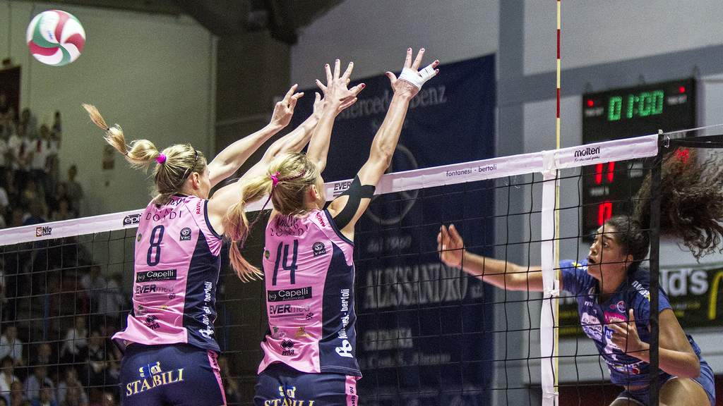 FOPPAPEDRETTI BERGAMO: 1 Mori, 4 Plak, 5 Frigo, 6 Gennari, 7 Cardullo, 9 Aelbrecht, 10 Paggi, 13 Barun-Susnjar, 14 Lo Bianco, 15 Durisic, 16 Mambelli, 17 Sylla. All. Lavarini, vice Angelini.