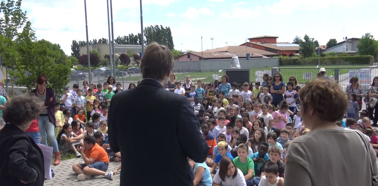 Le opere d’arte degli studenti della Marconi martedì mattina sono state esposte nel giardino esterno della Marconi o nei corridoi interni, rendendo ancora più colorato l’edificio durante la visita del sindaco Filippo Bongiovanni e della responsabile dei servizi culturali del comune Roberta Ronda. Accolto da un simpatico mosaico preparato ad hoc dai bambini, il sindaco si è complimentato con loro e ha spiegato di non avere avuto l’opportunità, quando lui stesso frequentava le scuole elementari, di vivere e sperimentare laboratori artistici così ben strutturati come questo, dal titolo “Di arte in arte”. La dirigente scolastica Susanna Rossi ha anche anticipato che il progetto verrà riproposto con l’anno nuovo, coinvolgendo anche studenti delle classi prime e seconde, per fare apprezzare a tutti il valore della bellezza.