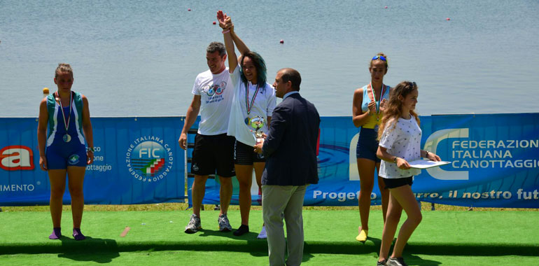 AGGIORNAMENTO – Grande oro per Alessandra Montesano della Canottieri Eridanea, che conferma la crescita degli ultimi mesi e si prende la medaglia più importante nella finale del singolo Junior femminile. Montesano ha chiuso in 8’01”63, superando Greta Martinelli (Tremezzina) che ha chiuso in 8’08”09 e Giovanna Schettino (Aniene) che ha chiuso in 8’11”23.