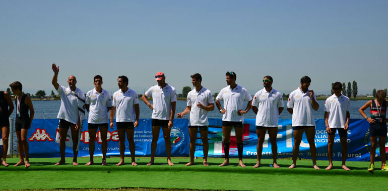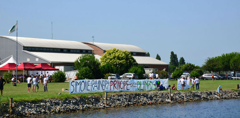 E perché questo oro, conquistato a pochi metri in linea d’aria dall’impianto di Mirabilandia, è la chiusura ideale di una carriera da favola. La barca di Simone, con Luca Agamennoni, Domenico Montrone, Mario Paonessa, Alessio Sartori, Matteo Stefanini, Andrea Tranquilli, Simone Venieri e con Luca Cilenta timoniere, ha chiuso in 5’41’’29, superando di quasi 5 secondi il Lario Sc, che ha chiuso in 5’46’’15. Terzo posto per la Telimar in 6’20’’20, un abisso. Simone dunque chiude da re, dedicando questi quasi 30 anni di carriera, dai microfoni di Rai Sport subito dopo il successo, agli amici arrivati a Ravenna per sostenerlo (molti dall’Eridanea e dagli Amici del Po), ai genitori, alla fidanzata. “Continuerò con questo sport – ha spiegato Raineri – sperando di aiutare tanti giovani ad avvicinarsi al canottaggio”. Per lui, insomma, è pronto un futuro da allenatore, come Gianluca Farina, il primo olimpionico di Casalmaggiore, seguendo del resto le orme di papà Pietro e del mentore Umberto Viti. Alla premiazione Simone è stato accolto da un lungo applauso e dal suono di alcune trombette dei tifosi: il giusto tributo, non solo casalese, a una leggenda di questo sport.