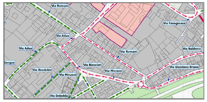 ZONA DI VIA FORMIS – ISOLABELLA – VIA FAVAGROSSA: La proposta è quella di invertire i sensi di marcia di alcune vie; via Veneto diventerà senso unico con direzione da via Guerrazzi a via Formis, via Zuccari sarà senso unico con direzione dall’Isolabella a via Guerrazzi e in via Favagrossa verrà instituito un doppio senso di circolazione. Così facendo si verrà a creare un’anello di circolazione più efficace. Gli interventi previsti sono: costruzione di una pista ciclabile ad uso promiscuo a senso di circolazione (senso contrario al senso di marcia delle autovetture), questa sarà realizzata sul lato sinistro di via Formis (a lato del Duomo), la pista ciclabile partirà dal duomo e raggiungerà l’istituto Busi, per garantire maggiore sicurezza sia ai pedoni, sia ai ciclisti. Questa pista ciclabile sarà a quota stradale, delimitata da paletti di protezione. Verranno risistemati i parcheggi davanti al Duomo, non più a spina di pesce ma verticali. Riorganizzazione dei parcheggi nella zona dell’Isolabella. Costruzione di una rotatoria nell’incrocio con via Veneto. Considerato l’inversione di marcia di via Veneto e verificata la scarsa visibilità all’uscita pedonale dal parco del Duomo per maggiore sicurezza si installeranno delle transenne di protezione. Nella zona dell’Isolabella verranno creati dei nuovi marciapiedi, nei tratti mancanti, a quota stradale circoscritti da paletti di delimitazione, al fine di garantire una maggiore sicurezza ai pedoni. Riorganizzazione dei parcheggi in piazza Garibaldi in entrata di Via Favagrossa. Si intende inoltre inserire una aiuola spartitraffico in corrispondenza dell’immissione di via Favagrossa in Piazza Garibaldi, in modo da garantire una maggiore sicurezza ai pedoni che attraversano la carreggiata. Risistemazione incrocio tra via Favagrossa e l’Isolabella creando una zona di carico e scarico in sicurezza e un manufatto per migliorare l’entrata e l’uscita da via Favagrossa. Verrà creato un percorso sicuro, con gli appositi parcheggi, per facilitare il passaggio dall’Isolabella a Piazza Garibaldi e viceversa. Questo quanto riporta il nuovo PUT relativamente all’area. Così come avevamo anticipato via Favagrossa perde i parcheggi e torna, come poco più di vent’anni fa, a doppio senso di marcia.