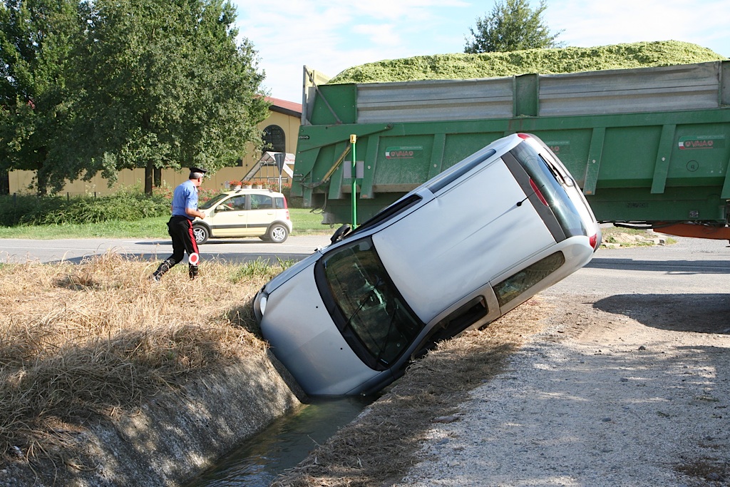 "Avevo messo la freccia - spiega il giovane contoterzista impegnato nel trasporto del trinciato - quando da dietro è arrivata l'altra auto da dietro. Ha toccato leggermente la ruota ed è finita nella canalina"