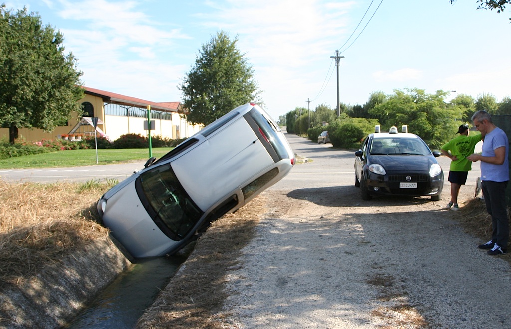 Motta Baluffi, con l'auto nel fosso dopo un tentato sorpasso, 40enne quasi illeso