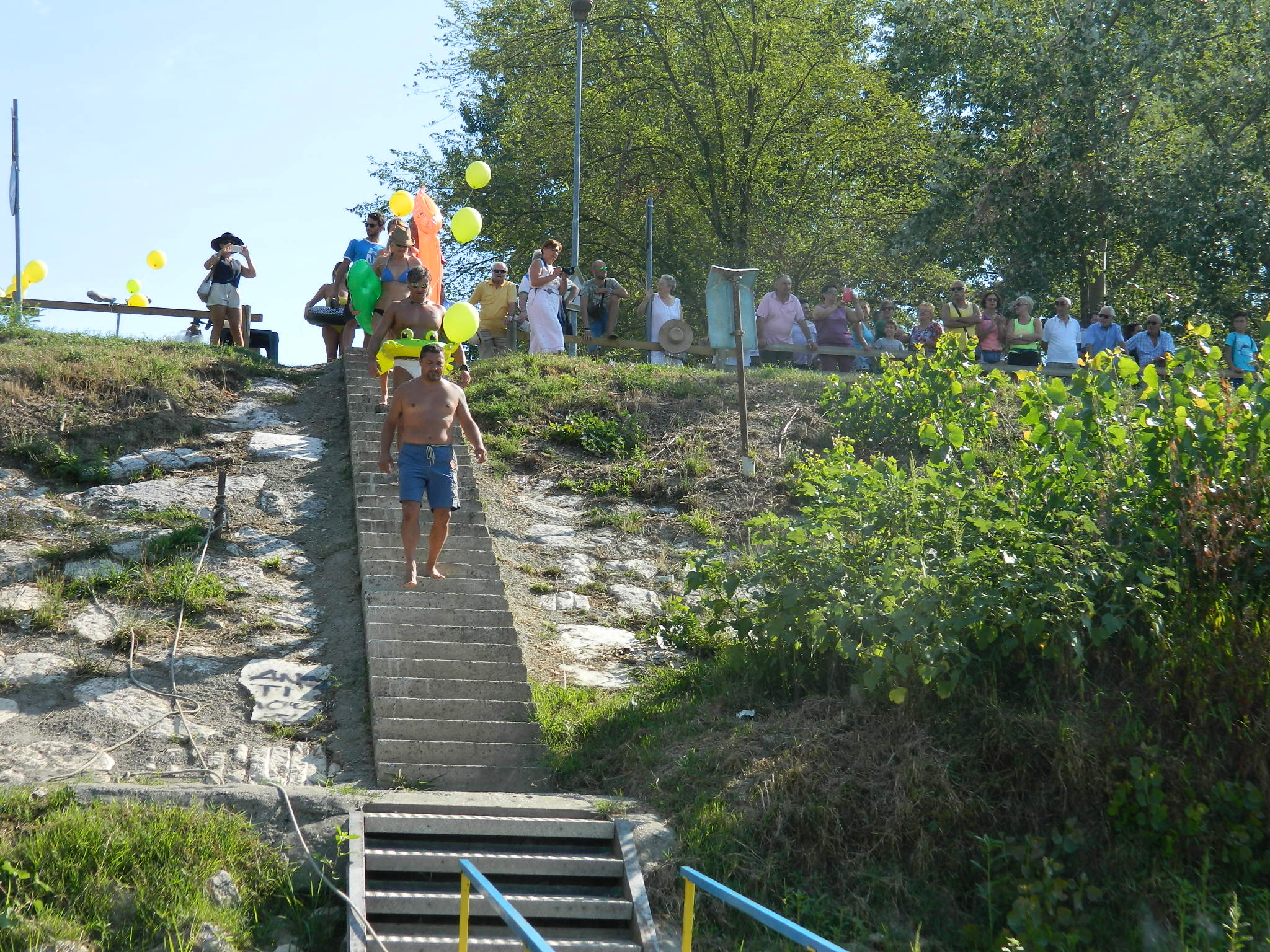 Cinquanta partecipanti, festa e divertimento. Il fiume e la sua gente. Tanti palloncini colorati da Canottieri a Canottieri. Un ferragosto diverso vissuto nelle acque del fiume. Le foto di Angelo Crippa