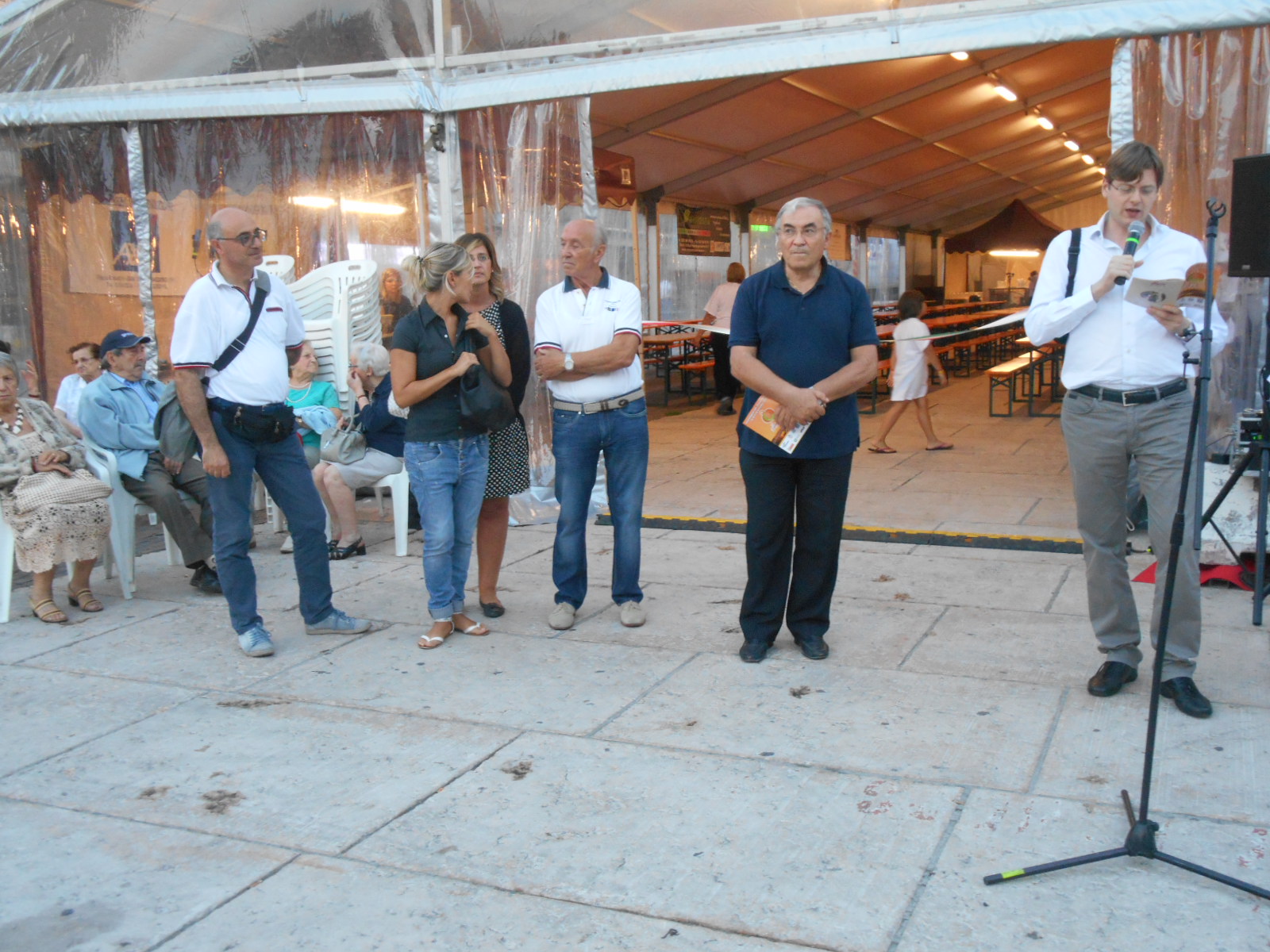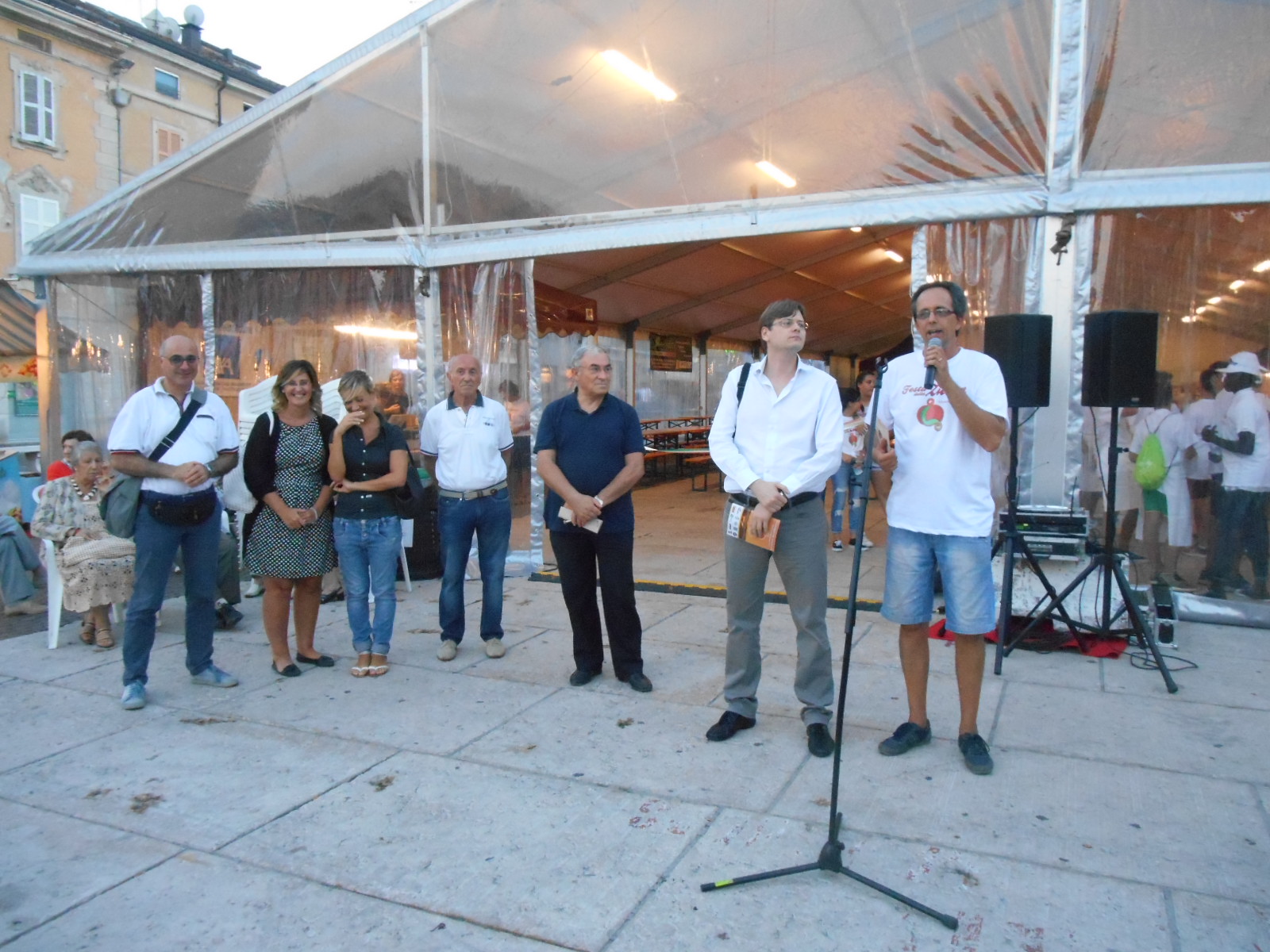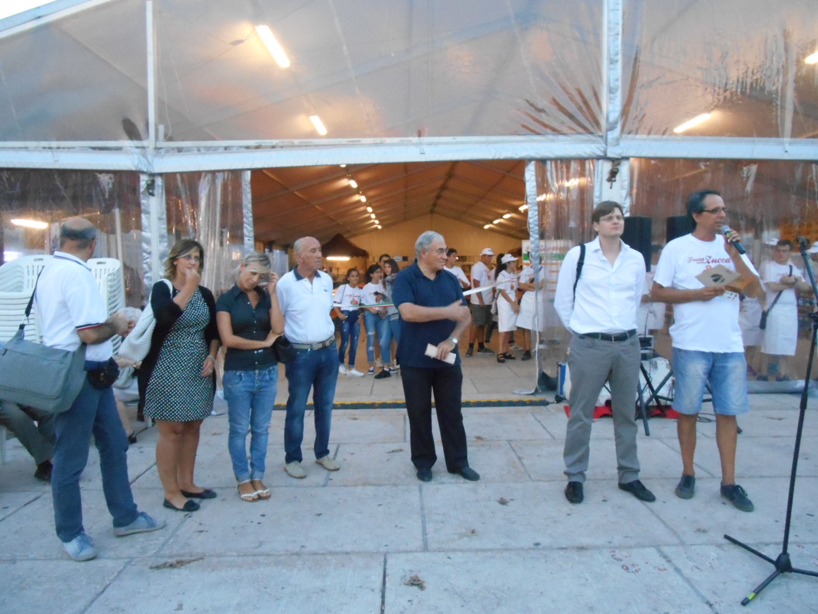 Il sindaco Bongiovanni ha lasciato il compito di tagliare il nastro al decano della manifestazione, sempre impegnato in cucina, Rizzi Francesco di Fossacaprara.