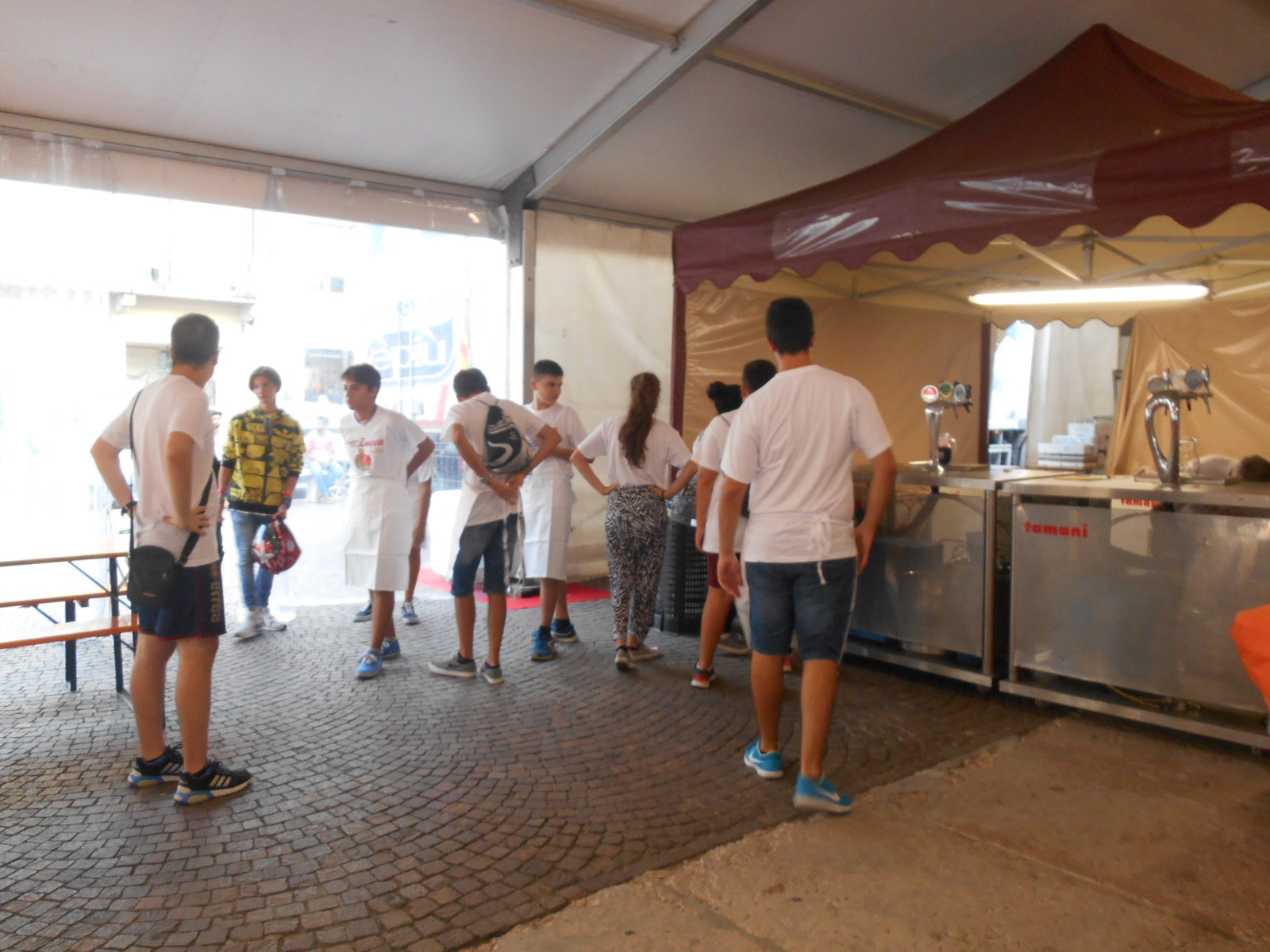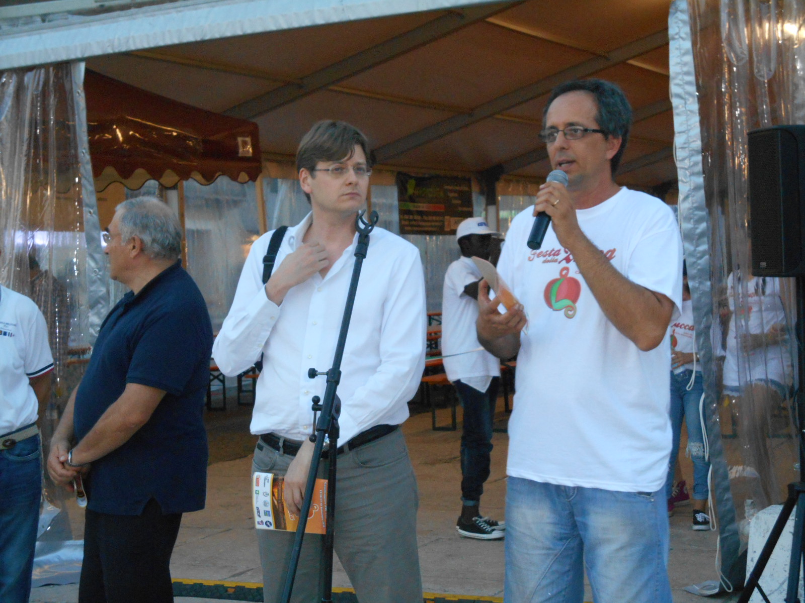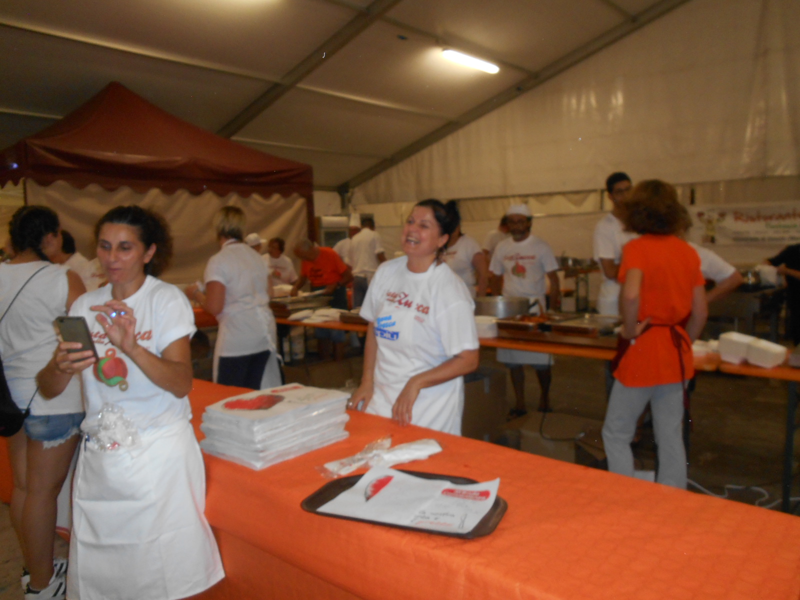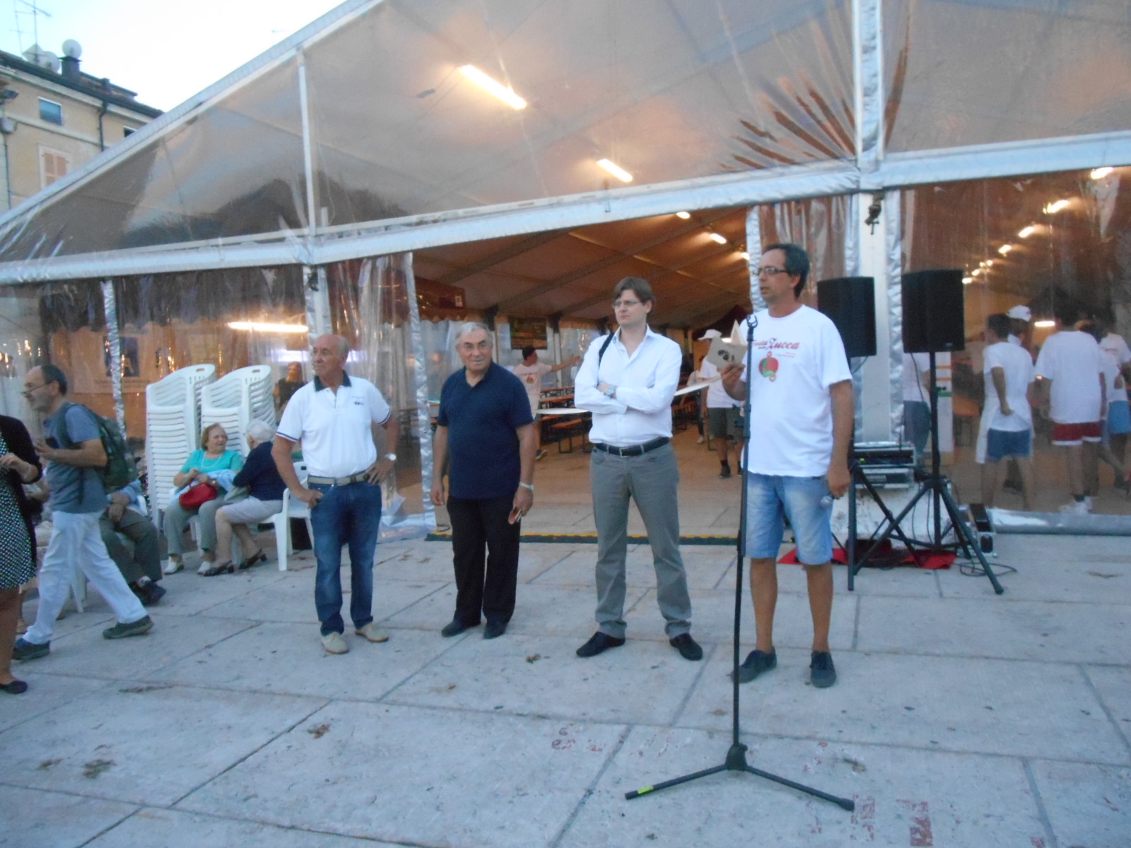 Il sindaco Bongiovanni ha lasciato il compito di tagliare il nastro al decano della manifestazione, sempre impegnato in cucina, Rizzi Francesco di Fossacaprara.