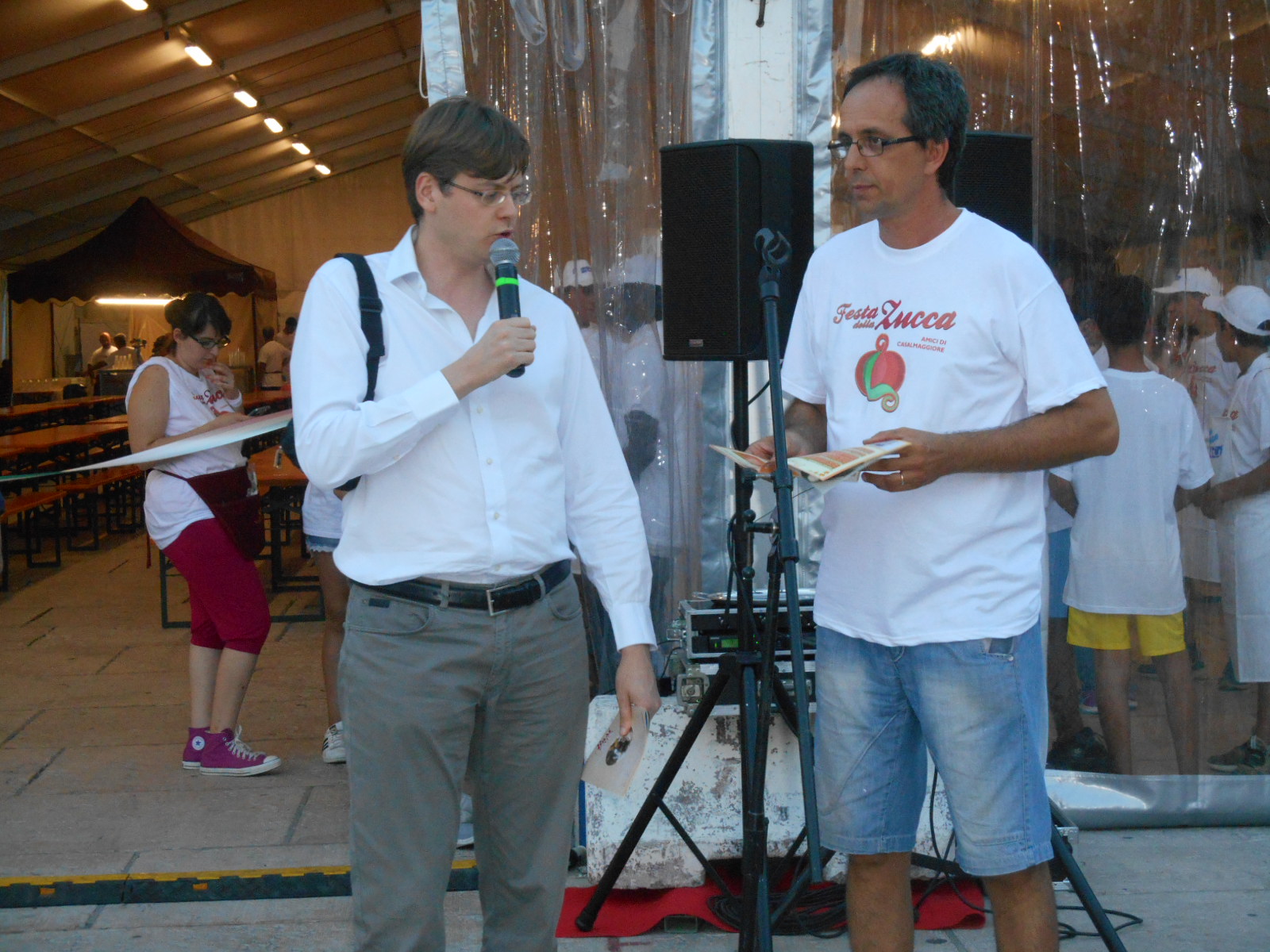 Dopo la benedizione impartita dal parroco del duomo don Cesare la gente piano piano ha cominciato a recarsi alle casse per acquisire la possibilità di mangiare gli ormai celebri blisgon. Ma la chicca vera e propria di tutta la manifestazione è stata la diffusione su uno schermo di uno spezzone della famosa Corrida, la trasmissione di Corrado del 1992 quando il concittadino Giuseppe Raineri si esibi’ nella celebra romanza “Ch’ella mi creda” consentendogli di vincere quella memorabile edizione. Peccato che il reperto televisivo sia stato seguito da pochi fortunati che si sono accorti della sorpresa. Ma la mostra del nostro ruspante artista proseguirà per parecchi giorni, proprio nella ex sede delll’anagrafe li vicino alla piazza, e si spera che altra gente abbia l’opportunità di vedere questa reliquia televisiva.