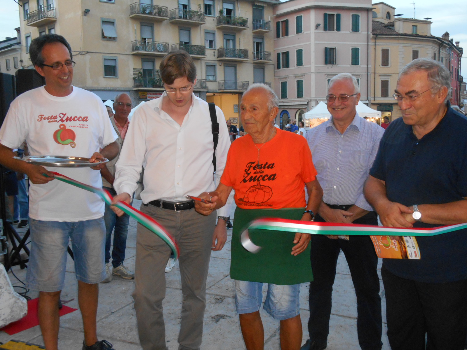 CASALMAGGIORE – Inaugurazione della quinta edizione della Festa della zucca giovedi in piazza a Casalmaggiore. Una festa un pò sotto tono per coloro che ricordavano le precedenti edizioni con situazioni coreografiche indimenticabili. Coreografie sontuose con l’arrivo della principessa rappresentata da una ragazzina in guanti bianchi e velo azzurro trasportata su una carrozza trainata dai cavalli.