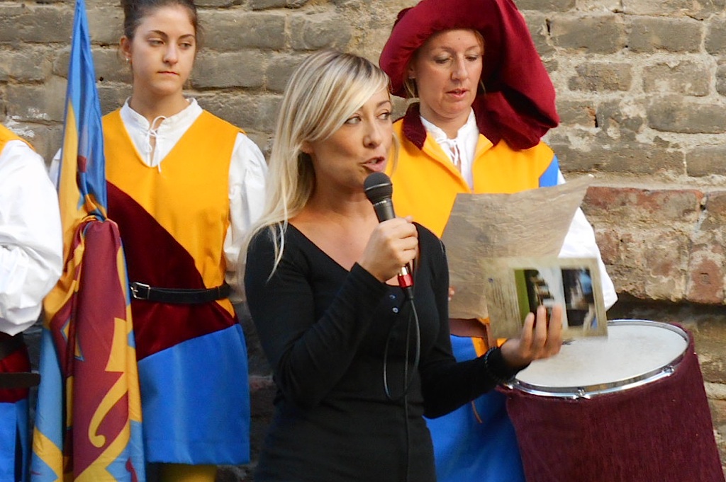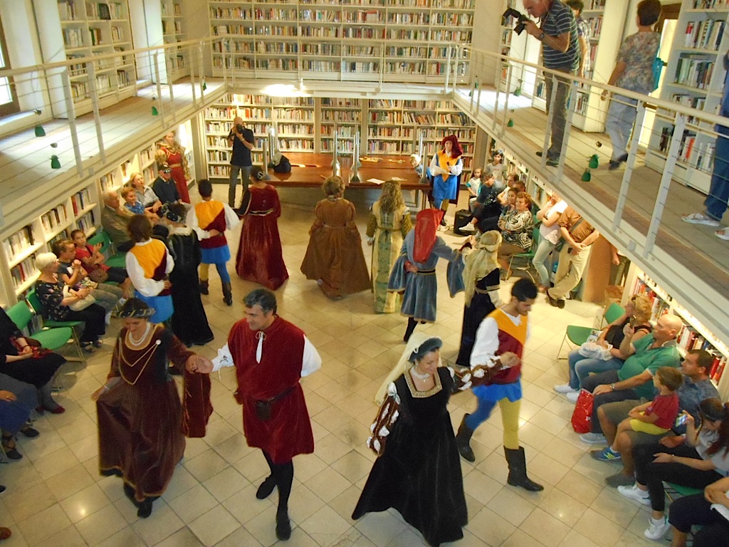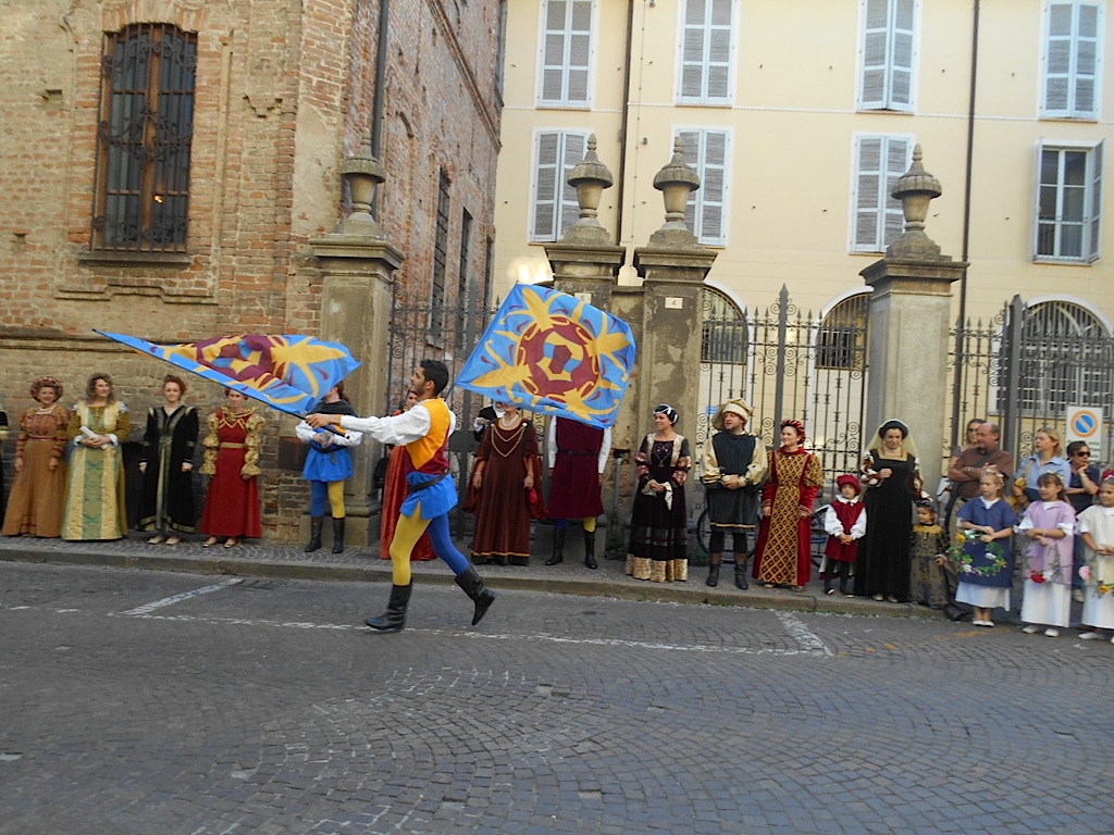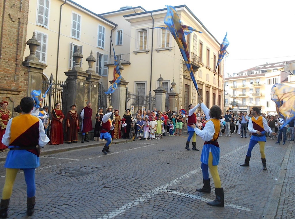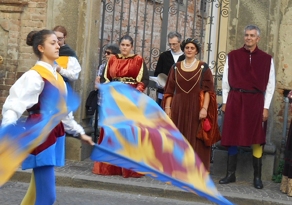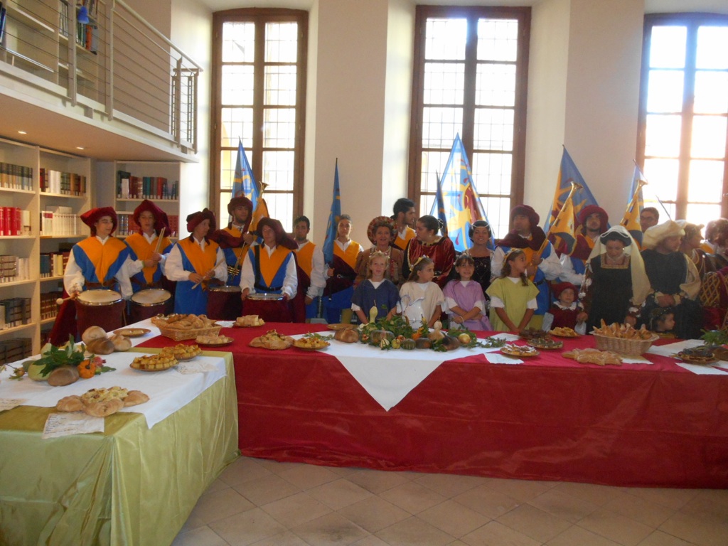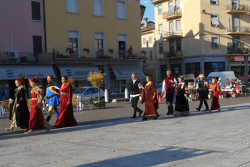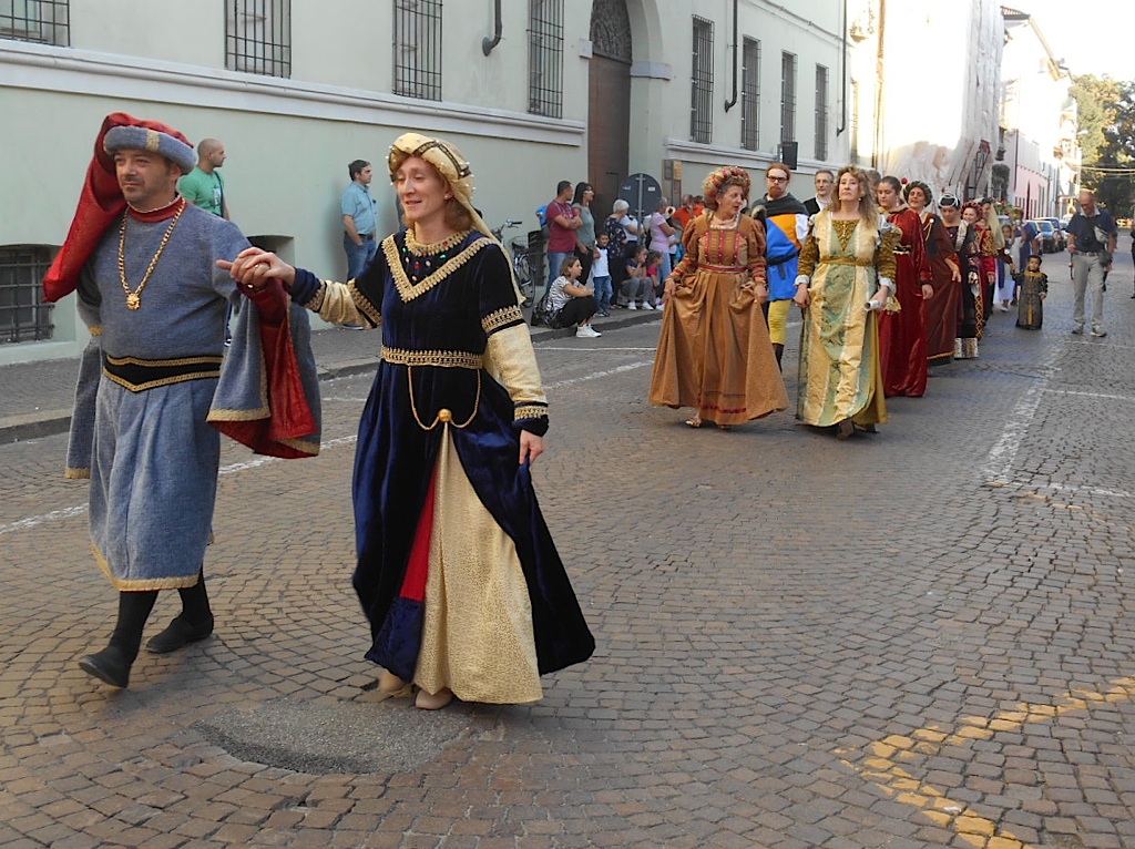CASALMAGGIORE – Un balzo nel Rinascimento, tra cibo, musici, damigelle in cotume ed arditi cavalieri. Il centro cittadino (Piazza Garibaldi e la Biblioteca Mortara) hanno vissuto ieri, nel tardo pomeriggio, un bel momento di rievocazione storico/culinaria grazie al gruppo storico cittadino, il Torrione. Il gruppo, rigorosamente in costume, ha accolto la cittadinanza (giunta in buon numero per godersi lo spettacolo) davanti alla biblioteca e dopo una sfilata, al suono dei corni e dei tamburi, in piazza Garibaldi, tutti si sono spostati davanti alla biblioteca dove gli sbandieratori hanno dato sfoggio di tutta la loro maestria. Una nota di merito va data a tutti, ma soprattutto a loro per l’abilità che ormai contraddistingue – nel gesto non semplice – i giovani che si dilettano con le bandiere. A salutarli davanti alla biblioteca e prima dell’ingresso, l’assessore alla Cultura Pamela Carena che ha ringraziato tutti per il lustro dato alla città e per lo studio di ricerca sugli usi e le tradizioni locali del tempo che li contraddistingue. La manifestazione si è poi spostata al’interno della biblioteca dove tra canti e sfilata si è consumata la ‘merenda’ con cibi, anch’essi frutto di ricerca, dell’epoca. Un bel momento di convivialità insomma, che ha soddisfatto tutti.