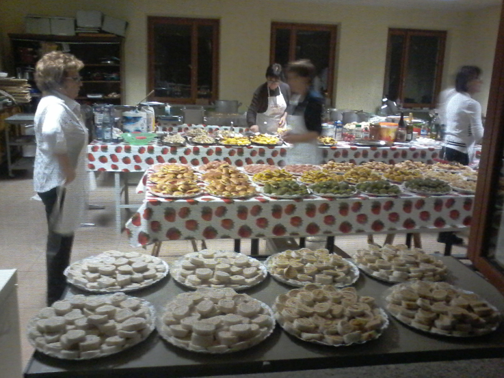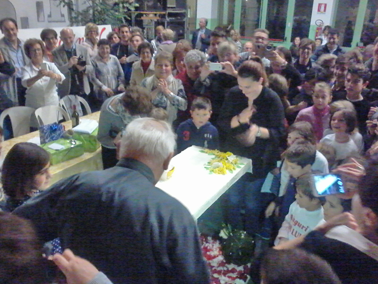 Ciò che è emersa è stata la straordinaria organizzazione che ha visto le donne del paese unite ai tanti giovani che si sono impegnati per la riuscita di un evento di grande successo. Una quantità industriale di antipasti, salumi, frittatine,verdure pastellate e poi i risotti in tre versioni, mare,terra e montagna. Tutti portati al tavolo dei commensali da ragazzi educatissimi assieme a bottiglie di lambrusco o prosecco, per chi lo preferiva. Per finire con la grande torta bianca a forma d’altare introdotta a luci spente mentre i bambini con la maglietta bianca su cui spiccava “Auguri don Luigi” cantavano tutti assieme davanti al festeggiato poco incline, per carattere ai festeggiamenti.