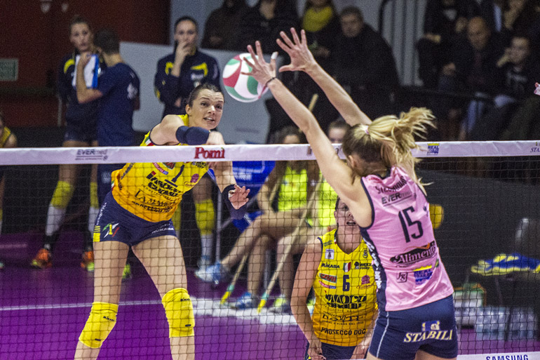 Gli ultimi punti sono uno stillicidio, con una Imoco che non si vuole arrendere e una Pomì decisa a portarsi a casa la partita. Ce la fa, anche se con fatica, per 30 a 28, portandosi in testa alla classifica del campionato e restando l'unica squadra imbattuta in serie A1.