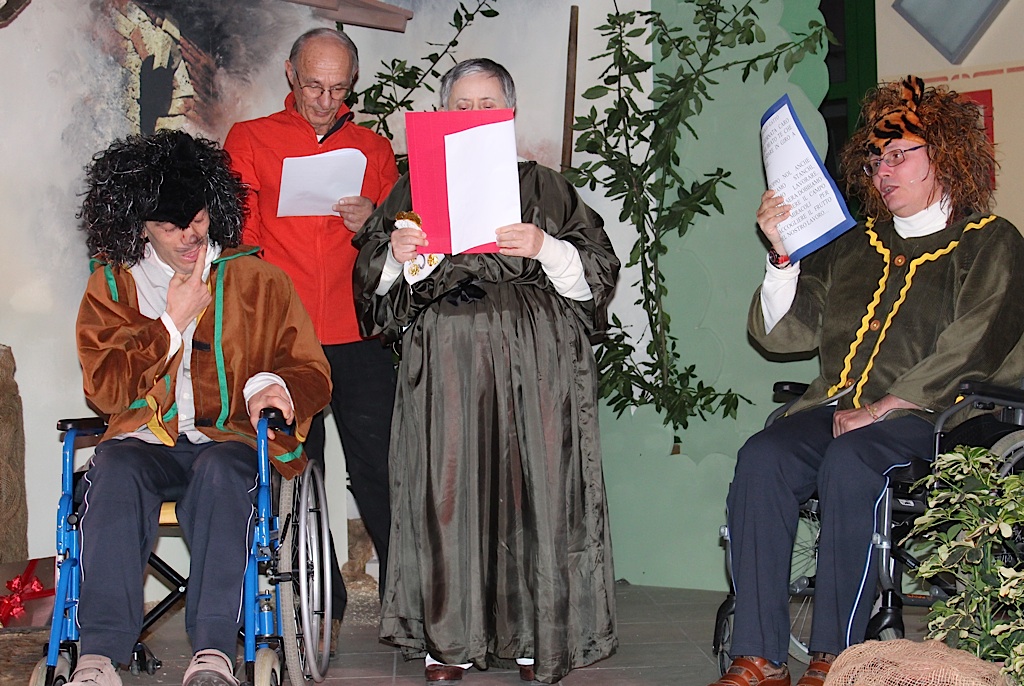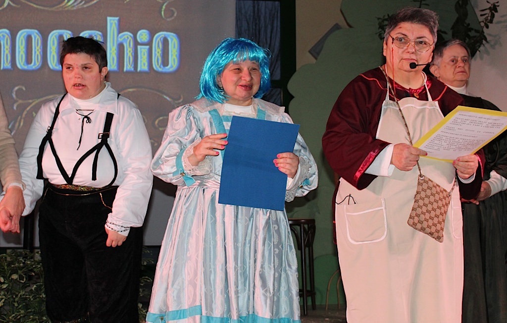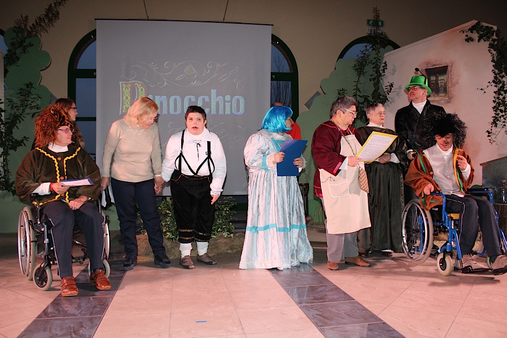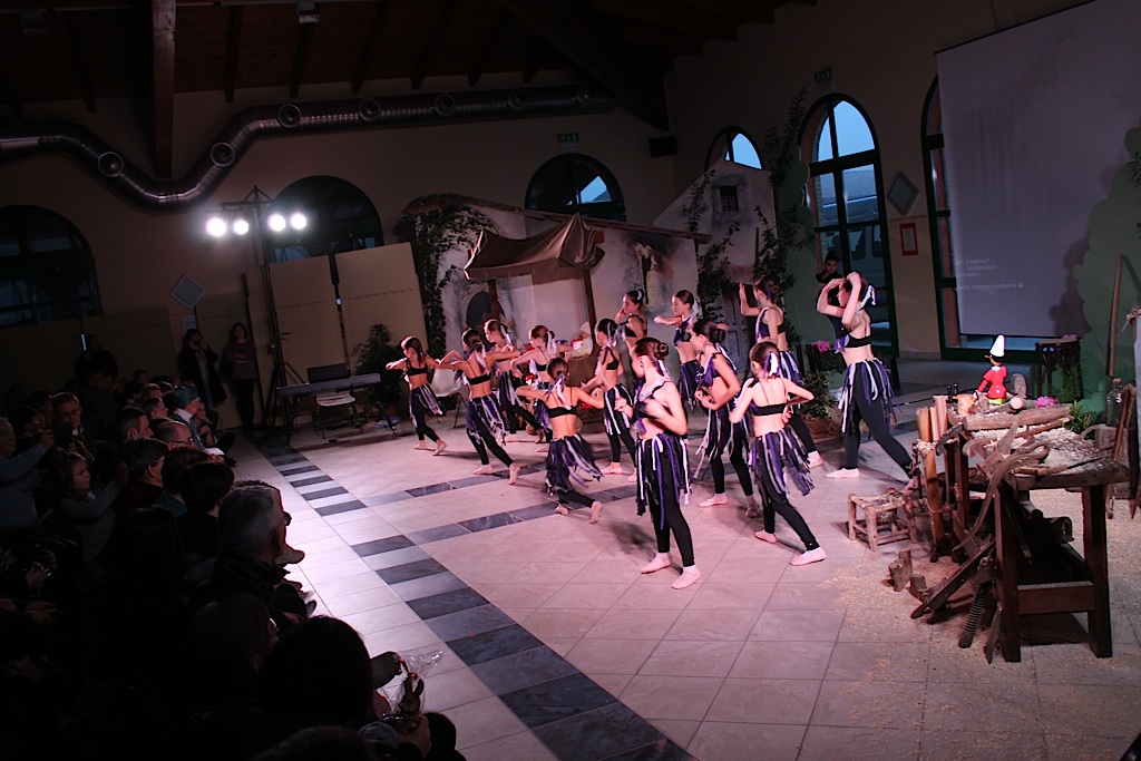A gestire tutto – come sempre – suor Maria Buongiorno. Tra un abbraccio e l’altro, tra un saluto e l’altro ha retto il microfono riempiendo i tempi morti con la sua filosofia. I figliuoli, l’amore, i bravi ragazzi e tutto il resto. Un gesto per tutti, come sempre. Lo spettacolo, partito con qualche minuto d’anticipo rispetto ai tempi previsti per esigenze del coro che doveva presenziare da un’altra parte, è stato caldo ed avvolgente. La trasposizione della favola di Pinocchio, che ha visto la partecipazione dei ragazzi della comunità di strada delle Salde, dei volontari e dello splendido corpo di ballo della scuola Dimensione Danza di Nilla Barbieri ha scaldato i cuori.