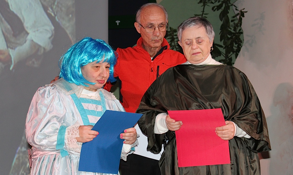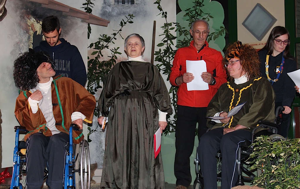 Come dicevamo all’inizio il tempo dilatato è stato solo una parentesi. E’ trascorso in assoluta leggerezza, si è sublimato nella recitazione dei tanti di loro che hanno partecipato ognuno portando in scena la propria forza e i propri limiti, affiancato da un angelo custode sulla scena a farli sentire più sicuri e meno soli, è stato incastonato in una splendida cornice scenica realizzata di tutto punto dagli amici della Casa Giardino. Una scenografia degna di un musical ed un paio d’ore che han fatto sentire tutti – pure i non credenti – un poco più vicini al cielo. E soprattutto ha fatto divertire i ragazzi: nei loro sorrisi finali e nella loro gioia il successo dello spettacolo.