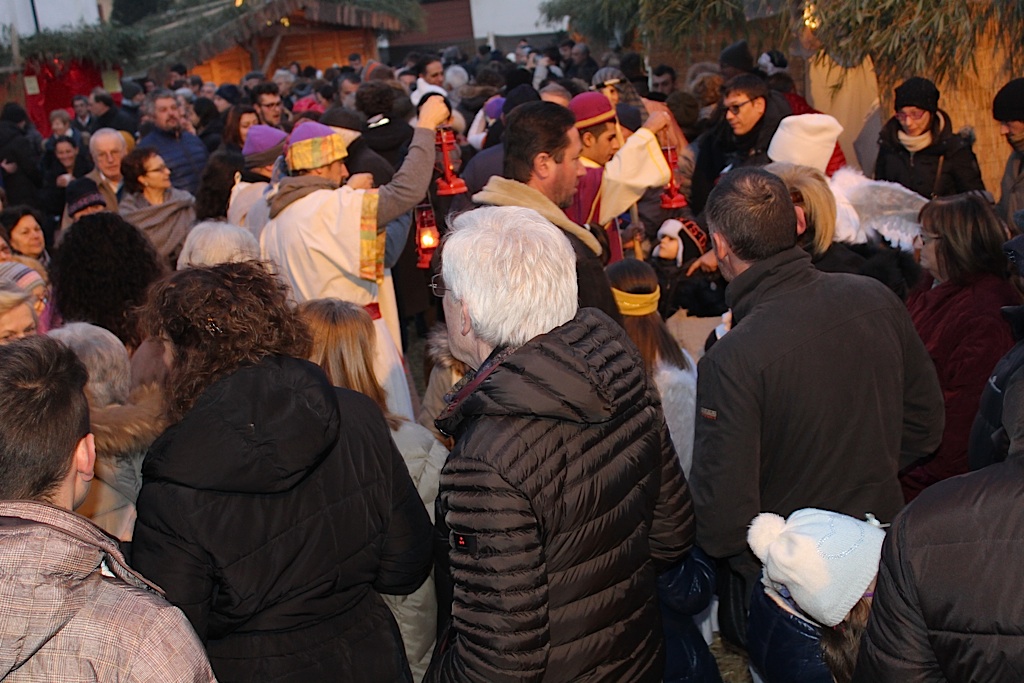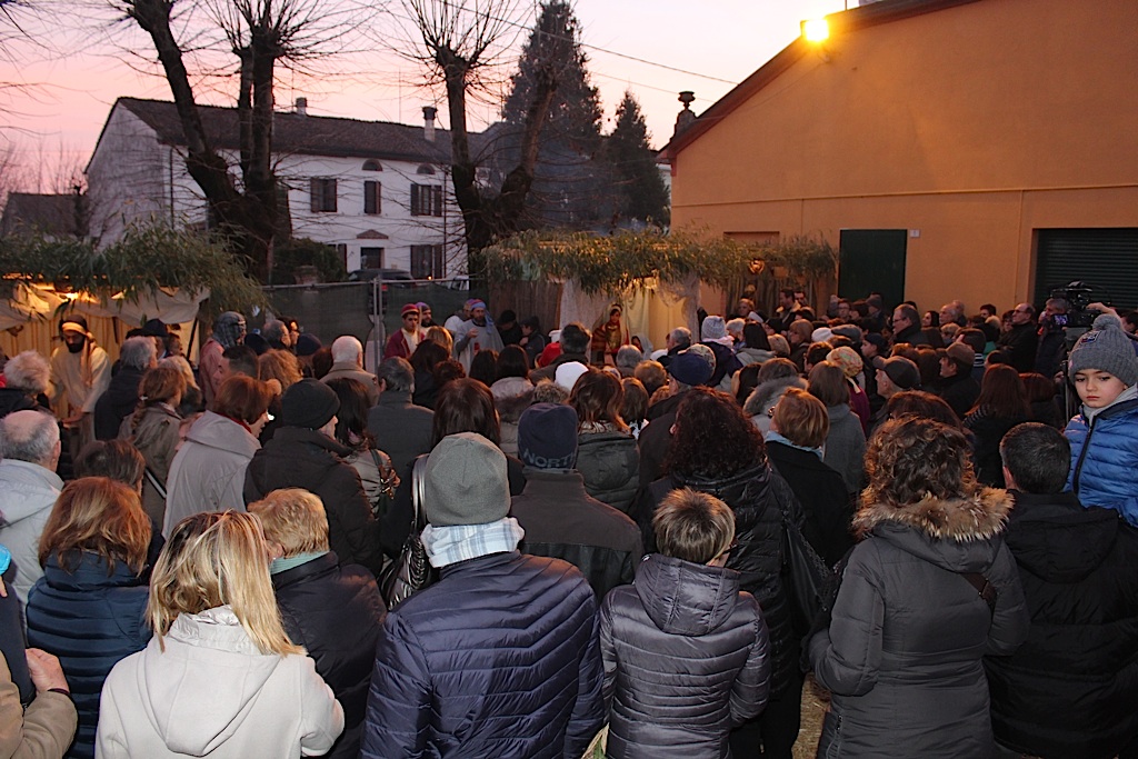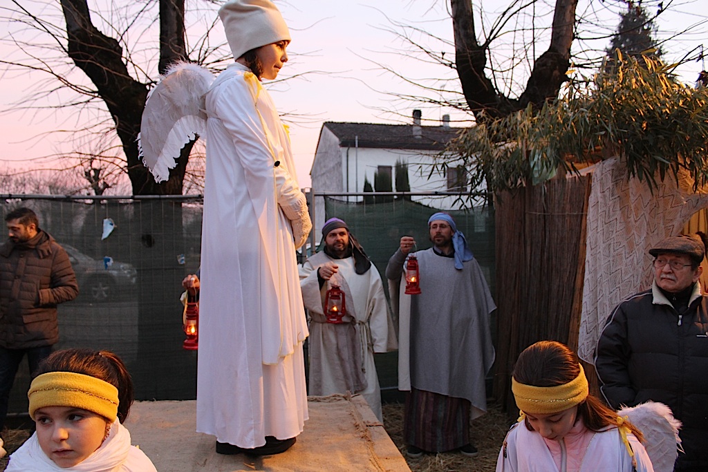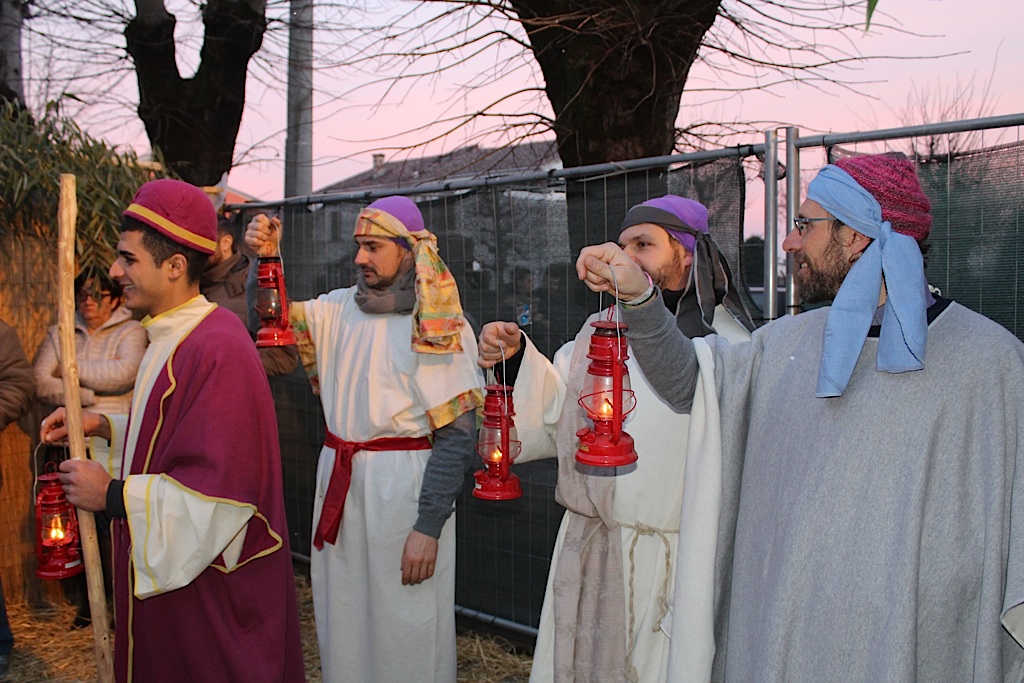QUATTROCASE – Bagno di folla ieri pomeriggio a Quattrocase, per l’ormai tradizionale presepe vivente e per l’inaugurazione del nuovo salone polivalente dell’Oratorio. La prima delle iniziative organizzata dal Gruppo Emergenti di Quattrocase, in collaborazione con l’unità pastorale San Vincenzo Grossi e del parroco don Ottorino Baronio, ha visto la partecipazione di numerosi abitanti del borgo. Il sagrato della chiesa ha fatto fatica a contenere il pubblico giunto dai paesi limitrofi per assistere al ‘racconto’ della natività. Tra locande, artigiani ed angeli la natività è stata impersonata da Valentina Vicini (Maria) Ugo Galli (Giuseppe) e dai due piccoli Stefano Tenca ed Aurora Cavalli (Gesù bambino). A seguire l’inaugurazione della sala. Don Ottorino Baronio ha lanciato un appello all’unità del paese, diviso dalla vicenda sulle organizzazioni che ha scosso l’intera comunità. L’inaugurazione è stata anche occasione per poter vedere la mostra con l’oratorio di una volta, le vecchie immagini del salone e delle sue attività prima dei lavori che ne hanno mutato radicalmente aspetto.