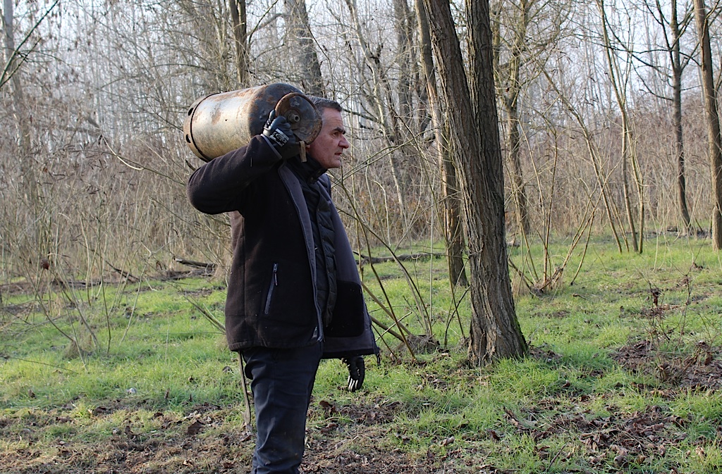 Martignana, il sindaco Gozzi e due volontari ripuliscono la golena