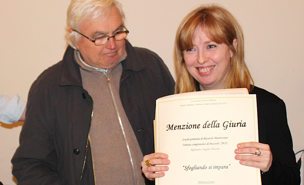 Poi si è passati ai premi di quest’anno. Al quarto posto – menzione d’onore – la scuola primaria di Rivarolo Mantovano con il progetto ‘Sfogliando s’impara’ che riguarda la difesa dell’ambiente ed il rapporto uomo-animale e parte dal favorire l’atteggiamento affettivo del bambino al libro per svilupparsi poi su più versanti. Al terzo “Percorsi d’acqua. Incontro con la storia, il paesaggio e la biodiversità dei corsi d’acqua dell’alto mantovano” della scuola primaria e secondaria di Piubega (MN) in un territorio in cui la tutela dei corsi d’acqua, degradati, è diventata fondamentale. Al secondo posto la scuola dell’Infanzia i Gelsi di Scandiano (RE) con “Riduco, Riciclo, Riutilizzo, Recupero: la teoria delle 4R in azione” e al primo posto l’istituto Romani di Casalmaggiore con il sapone di zucca, anche questo un progetto ben strutturato e multidisciplinare.