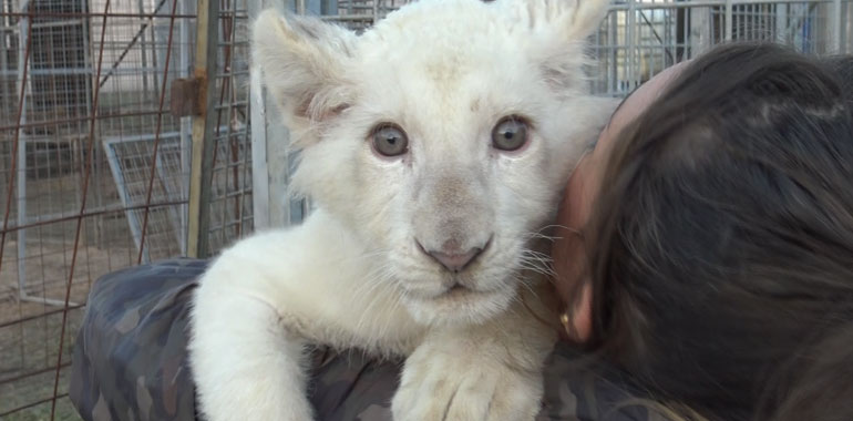 Di certo questi animali non sono nel loro habitat naturale, anche se poi andrebbe pure considerato che molti di loro sono nati in cattività: basterebbe osservare come questo cucciolo di leone albino fa le fusa alla sua padrona, proprietaria del circo, per capire che, almeno a prima vista, questi animali male non stanno. FOTOGALLERY