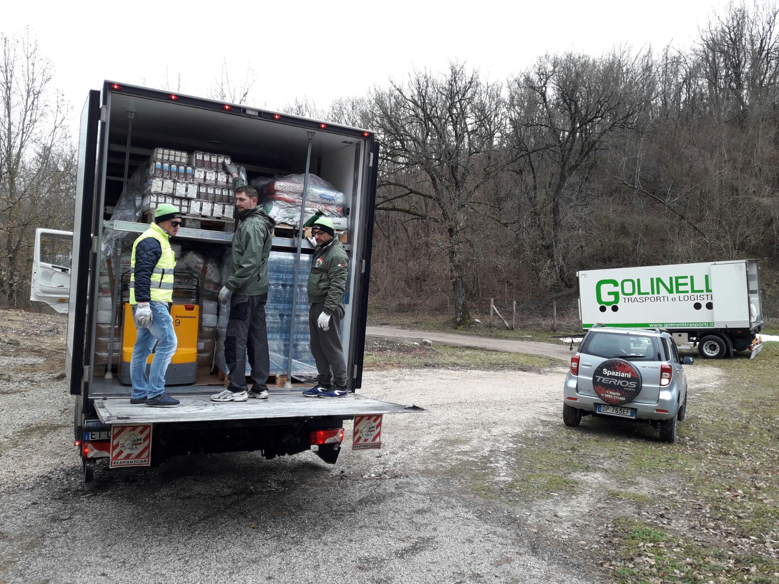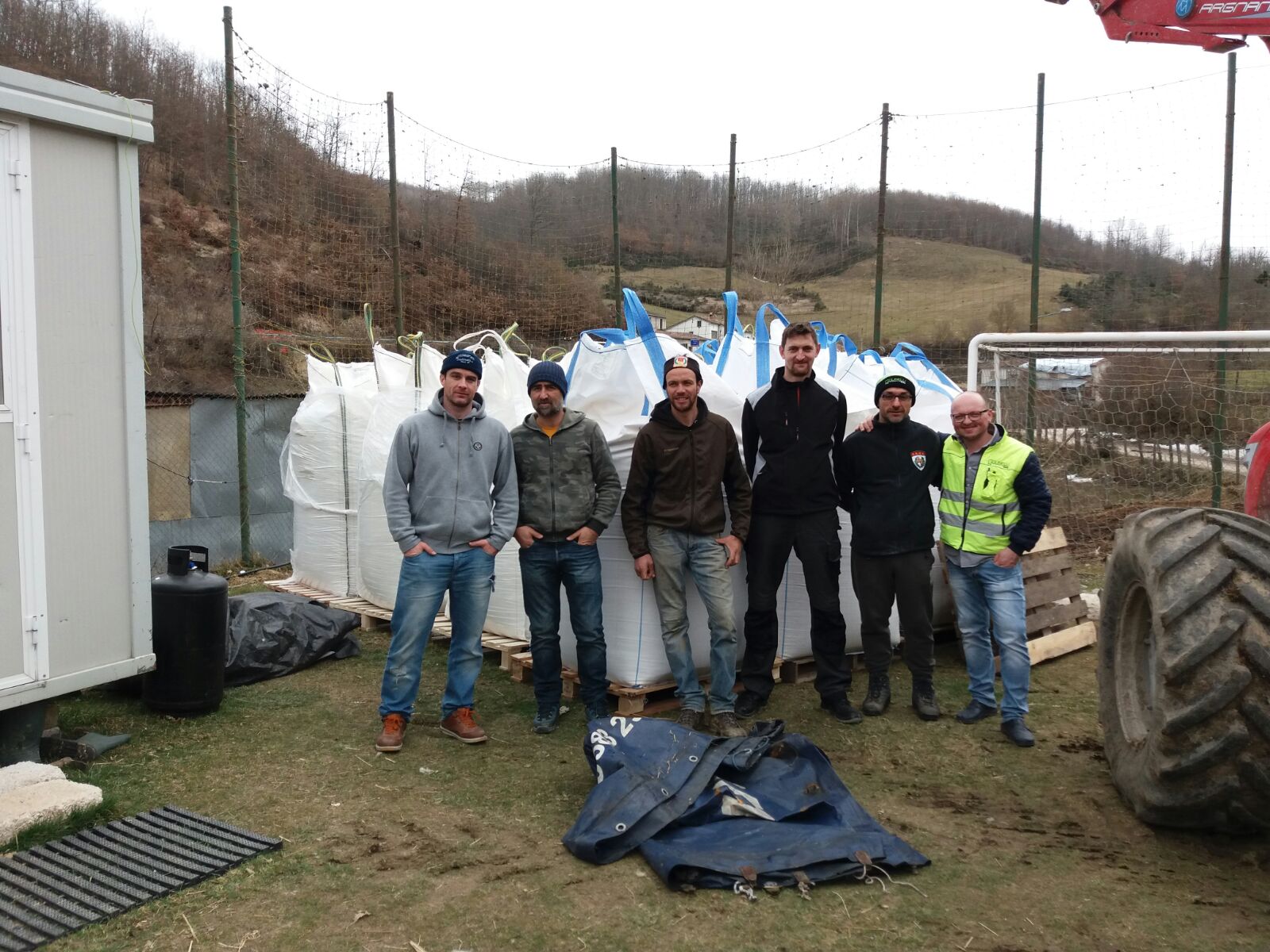 Tre rappresentanti del gruppo promotore del progetto ( Francesco Donati, Simone Roffia e Mirko Antoniazzi) si sono recati venerdì 24/02/2017 nella provincia dell’Aquila per portare gli aiuti ad alcuni amici allevatori della zona, che hanno subito danni ingenti a causa del sisma. I ragazzi hanno scortato il camion con motrice, messo a disposizione gratuitamente dalla ditta Golinelli trasporti di Porto Mantovano, guidato da due suoi autisti ( Andrea Golinelli e Andrea Gozzi). Fondamentale è stato l’aiuto della Azienda Golinelli per la realizzazione del progetto. Il camion e la motrice sono stati scaricati presso i diversi allevatori, in base alle necessità.