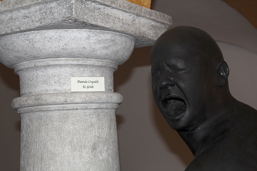 Il grido della Crepaldi è in mostra presso la Casa della Poesia. Non ha orari - il tempo ve lo abbiamo detto è un concetto dimenticato appena se ne varca la soglia - ma basta suonare il campanello per poterla vedere.