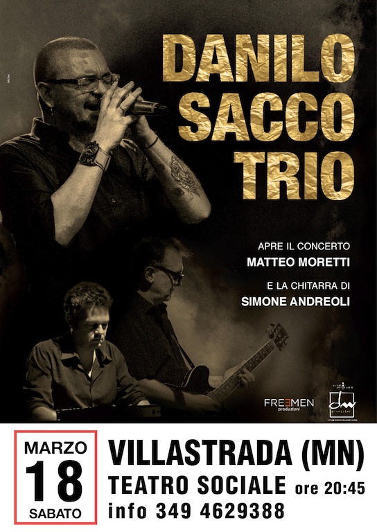 Aprirà i due concerti di Villastrada il duo Matteo Moretti e Simone Andreoli. Sul palco si esibiranno DANILO SACCO voce, Andrea Mei tastiere e Valerio Giambelli chitarra. L'evento è stato organizzato da Massimo Nizzoli attuale presidente del teatro di Villastrada.