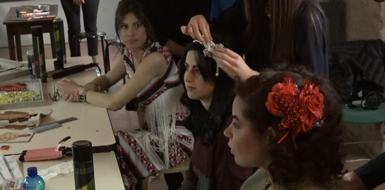 Ogni coppia, come detto, era formata da uno studente di Santa Chiara e un ospite della Germani: la mattinata di mercoledì è servita per presentare alle classi in visita (tre terze della media Diotti e due terze dell’Istituto Dedalo 2000) il lavoro svolto e una sorta di anteprima di quella che sarà la sfilata di Fossacaprara. FOTOGALLERY