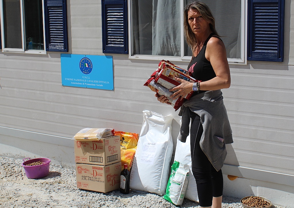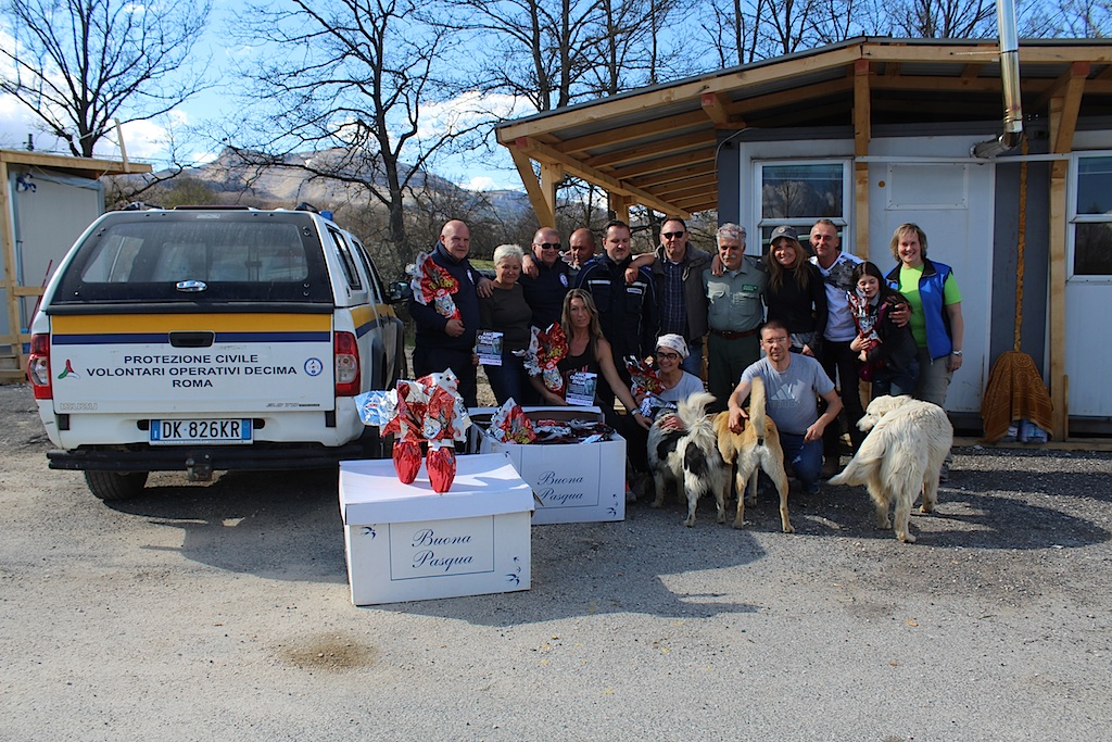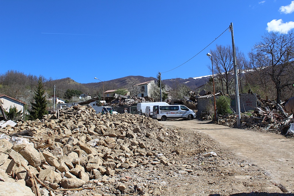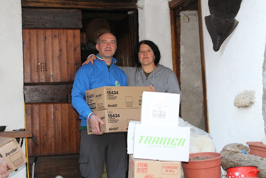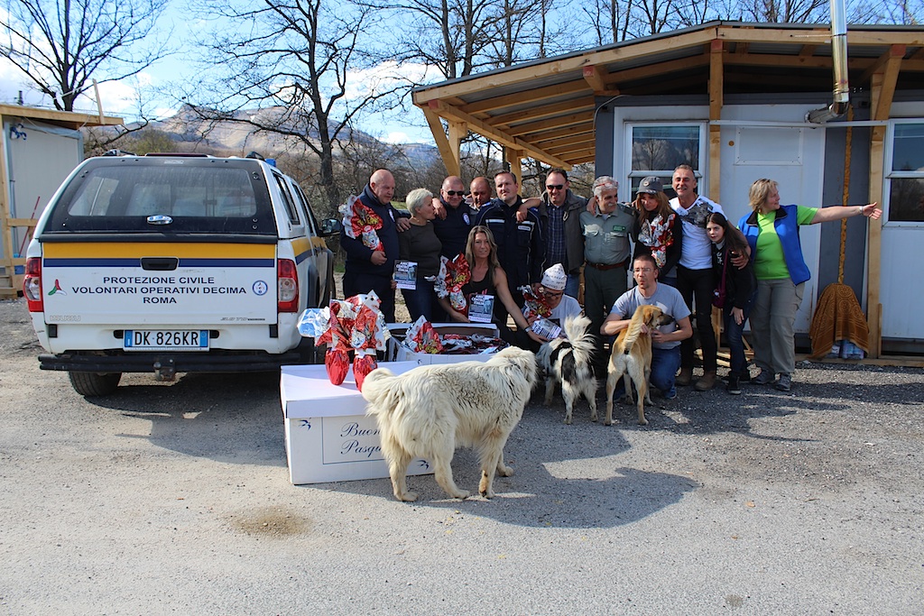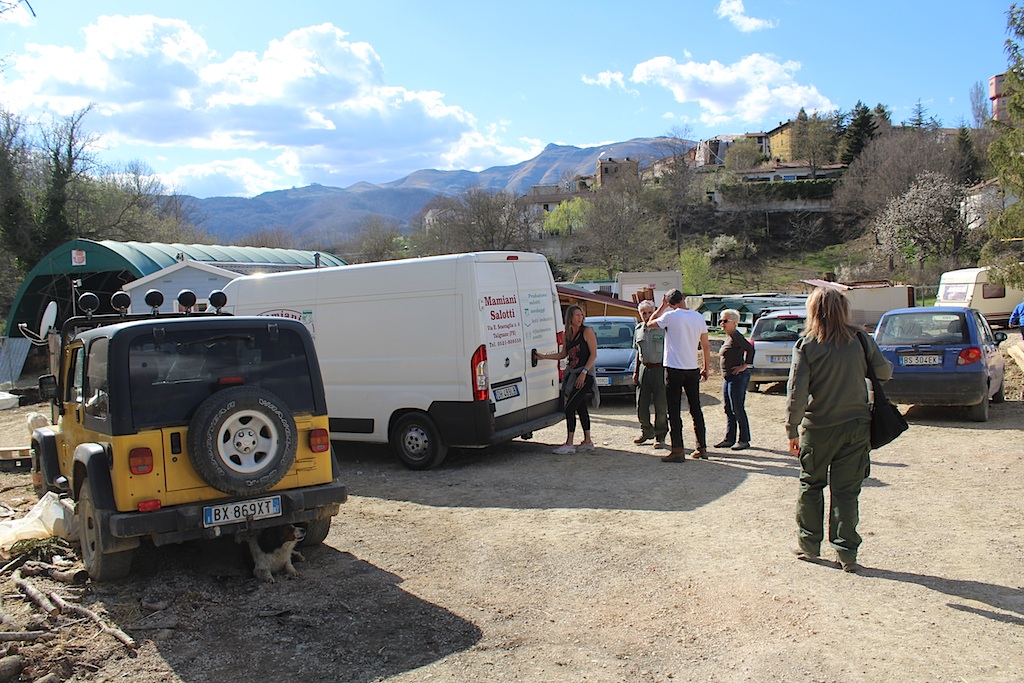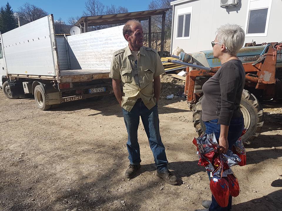 “Non è cambiato un gran ché da febbraio – raccontano i volontari – c’è sempre tantissimo da fare ma qualche piccolo sorriso in più, per lo meno, lo abbiamo incontrato. Gente di grandissima dignità ed altruismo, non ha voluto più roba di quella che a loro serviva. Abbiamo incontrato allevatori, persone che vivono nelle roulotte o in container, o altri, come l’amica Fabiana volontaria animalista di Aringo, vittima di un altro terremoto, che aspettano l’agibilità o i lavori della propria abitazione dal 2009. Tutti gli incontri sono stati intensi, ne raccontiamo tre. Il primo a Cornillo Vecchio, con Claudio che già avevamo conosciuto, allevatore, che ci aspettava con una torta fatta dalla moglie appositamente per noi e che ci ha raccontato che nei prossimi giorni finalmente gli porteranno un refrigeratore per il latte dal quale potrà ripartire per la propria attività. E’ stata una mezz’ora bella, lo abbiamo trovato un po’ più sorridente dell’ultima volta. Sta ripartendo con le piccole cose: nelle settimane scorse ha piantato pure i fiori davanti casa. Sembra una cosa normale, ma non lo è: è un piccolo segno della ripartenza, che ci ha mostrato con orgoglio. Ci ha abbracciato tutti, ad uno ad uno dicendosi contento quando arriva gente a trovarlo. Il secondo incontro intenso è stato quello a Casali di sopra. Un paese abitato da dieci anime. Ad un certo punto è arrivato un agricoltore con una bottiglia di vino bianco e ha voluto facessimo un brindisi sulla strada. L’ultimo a Casali di Sotto, con un ex imprenditore edile. Sta ricostruendo, da solo e con l’aiuto del WWF, una zona per i propri animali. Il materiale usato per il muro di cinta della casetta in legno che costruirà a breve, è pietra dei crolli. Da una stagione che ha lasciato il segno ad un’altra che piano piano riparte. L’ospitalità e la cordialità sono caratteristiche che abbiamo incontrato in tanta gente, e ci ha commosso”.