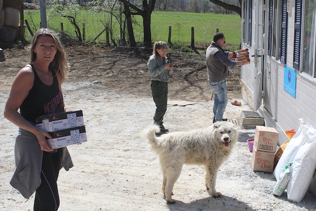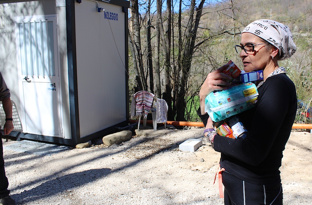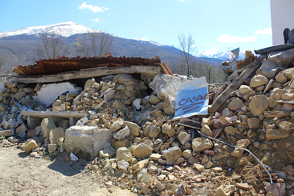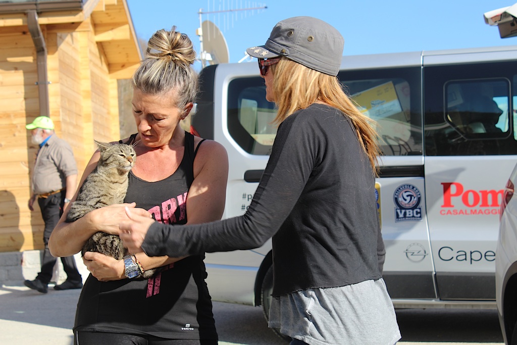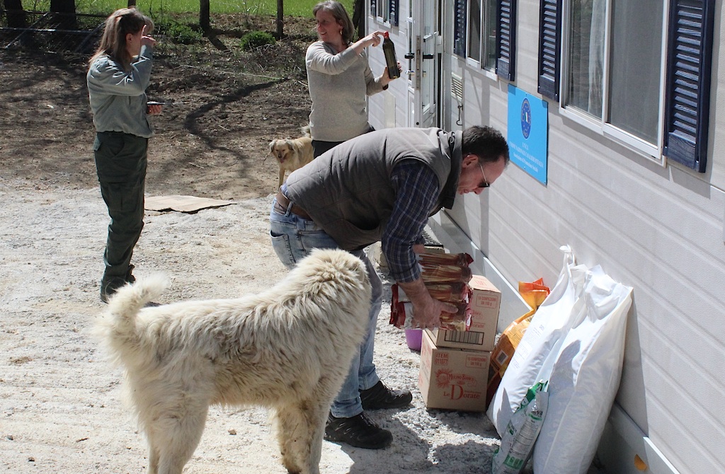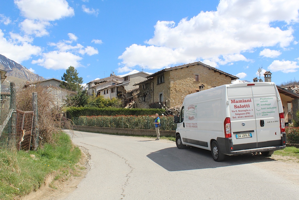 “Non è cambiato un gran ché da febbraio – raccontano i volontari – c’è sempre tantissimo da fare ma qualche piccolo sorriso in più, per lo meno, lo abbiamo incontrato. Gente di grandissima dignità ed altruismo, non ha voluto più roba di quella che a loro serviva. Abbiamo incontrato allevatori, persone che vivono nelle roulotte o in container, o altri, come l’amica Fabiana volontaria animalista di Aringo, vittima di un altro terremoto, che aspettano l’agibilità o i lavori della propria abitazione dal 2009. Tutti gli incontri sono stati intensi, ne raccontiamo tre. Il primo a Cornillo Vecchio, con Claudio che già avevamo conosciuto, allevatore, che ci aspettava con una torta fatta dalla moglie appositamente per noi e che ci ha raccontato che nei prossimi giorni finalmente gli porteranno un refrigeratore per il latte dal quale potrà ripartire per la propria attività. E’ stata una mezz’ora bella, lo abbiamo trovato un po’ più sorridente dell’ultima volta. Sta ripartendo con le piccole cose: nelle settimane scorse ha piantato pure i fiori davanti casa. Sembra una cosa normale, ma non lo è: è un piccolo segno della ripartenza, che ci ha mostrato con orgoglio. Ci ha abbracciato tutti, ad uno ad uno dicendosi contento quando arriva gente a trovarlo. Il secondo incontro intenso è stato quello a Casali di sopra. Un paese abitato da dieci anime. Ad un certo punto è arrivato un agricoltore con una bottiglia di vino bianco e ha voluto facessimo un brindisi sulla strada. L’ultimo a Casali di Sotto, con un ex imprenditore edile. Sta ricostruendo, da solo e con l’aiuto del WWF, una zona per i propri animali. Il materiale usato per il muro di cinta della casetta in legno che costruirà a breve, è pietra dei crolli. Da una stagione che ha lasciato il segno ad un’altra che piano piano riparte. L’ospitalità e la cordialità sono caratteristiche che abbiamo incontrato in tanta gente, e ci ha commosso”.