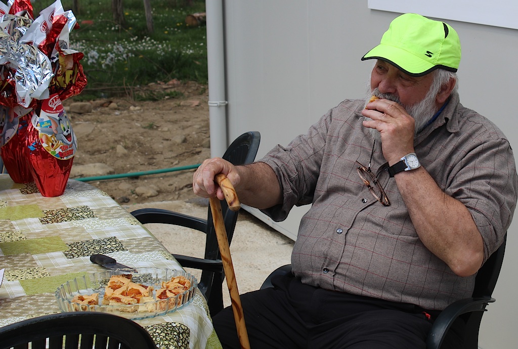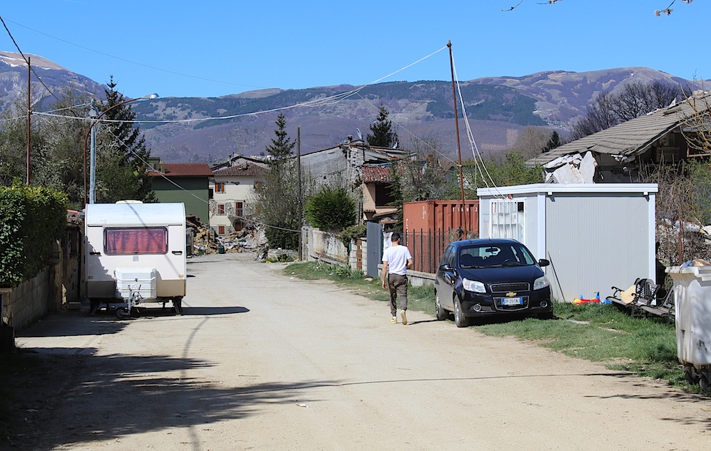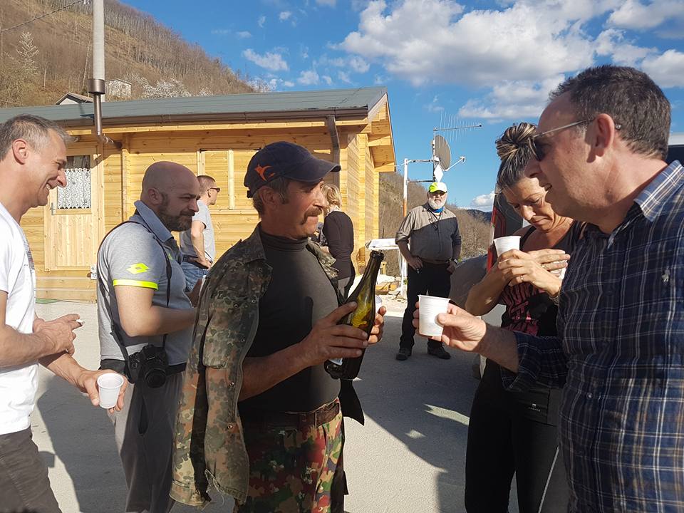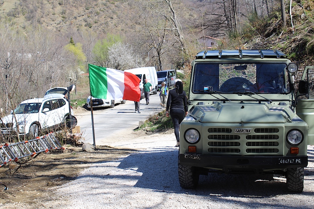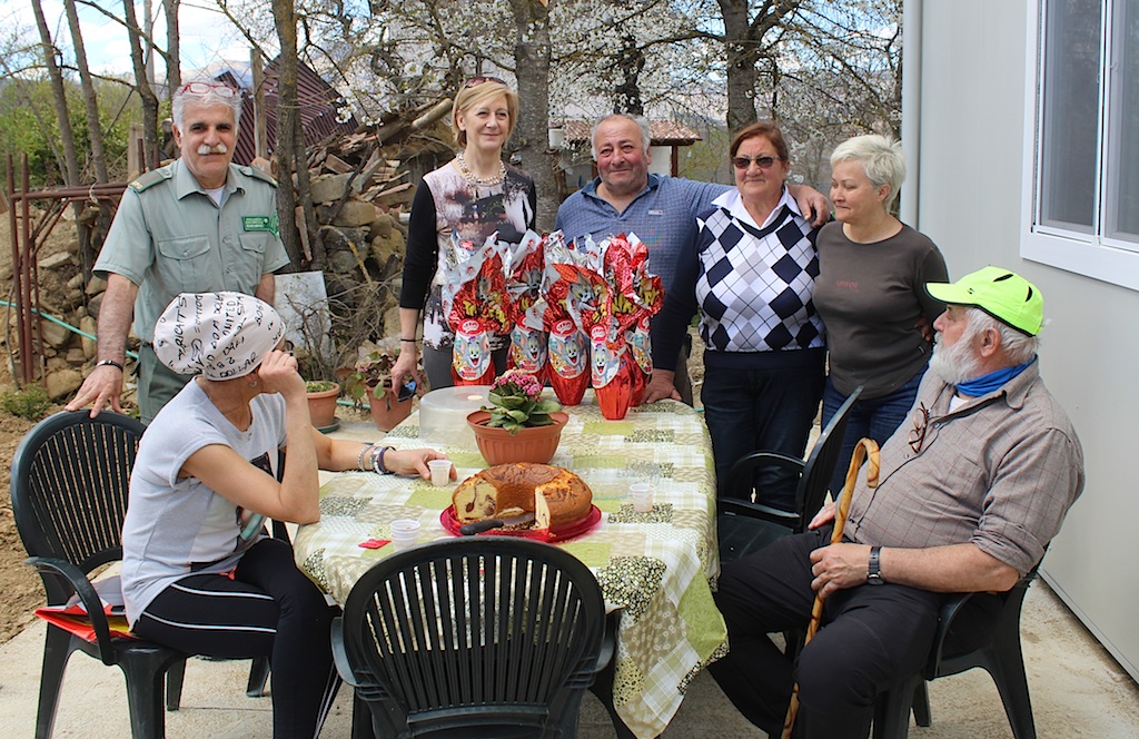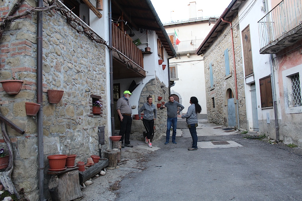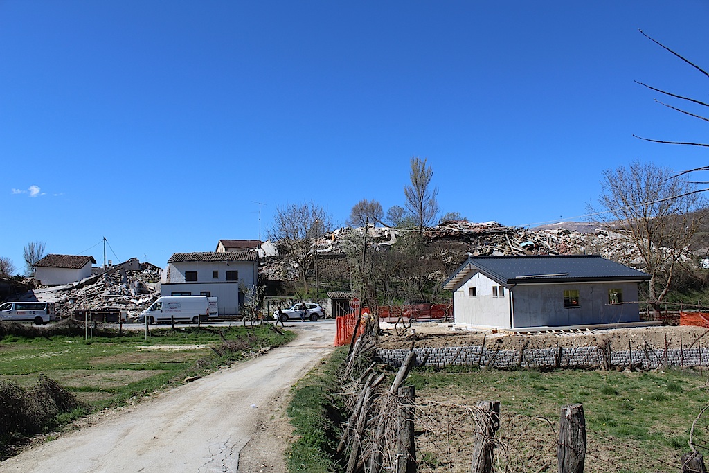 “Non è cambiato un gran ché da febbraio – raccontano i volontari – c’è sempre tantissimo da fare ma qualche piccolo sorriso in più, per lo meno, lo abbiamo incontrato. Gente di grandissima dignità ed altruismo, non ha voluto più roba di quella che a loro serviva. Abbiamo incontrato allevatori, persone che vivono nelle roulotte o in container, o altri, come l’amica Fabiana volontaria animalista di Aringo, vittima di un altro terremoto, che aspettano l’agibilità o i lavori della propria abitazione dal 2009. Tutti gli incontri sono stati intensi, ne raccontiamo tre. Il primo a Cornillo Vecchio, con Claudio che già avevamo conosciuto, allevatore, che ci aspettava con una torta fatta dalla moglie appositamente per noi e che ci ha raccontato che nei prossimi giorni finalmente gli porteranno un refrigeratore per il latte dal quale potrà ripartire per la propria attività. E’ stata una mezz’ora bella, lo abbiamo trovato un po’ più sorridente dell’ultima volta. Sta ripartendo con le piccole cose: nelle settimane scorse ha piantato pure i fiori davanti casa. Sembra una cosa normale, ma non lo è: è un piccolo segno della ripartenza, che ci ha mostrato con orgoglio. Ci ha abbracciato tutti, ad uno ad uno dicendosi contento quando arriva gente a trovarlo. Il secondo incontro intenso è stato quello a Casali di sopra. Un paese abitato da dieci anime. Ad un certo punto è arrivato un agricoltore con una bottiglia di vino bianco e ha voluto facessimo un brindisi sulla strada. L’ultimo a Casali di Sotto, con un ex imprenditore edile. Sta ricostruendo, da solo e con l’aiuto del WWF, una zona per i propri animali. Il materiale usato per il muro di cinta della casetta in legno che costruirà a breve, è pietra dei crolli. Da una stagione che ha lasciato il segno ad un’altra che piano piano riparte. L’ospitalità e la cordialità sono caratteristiche che abbiamo incontrato in tanta gente, e ci ha commosso”.