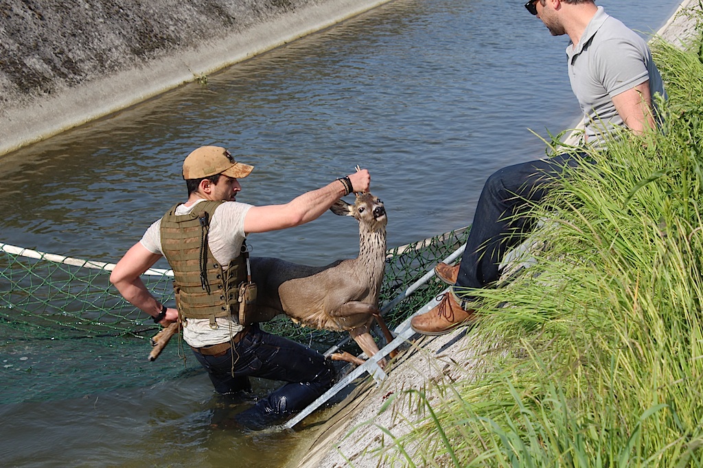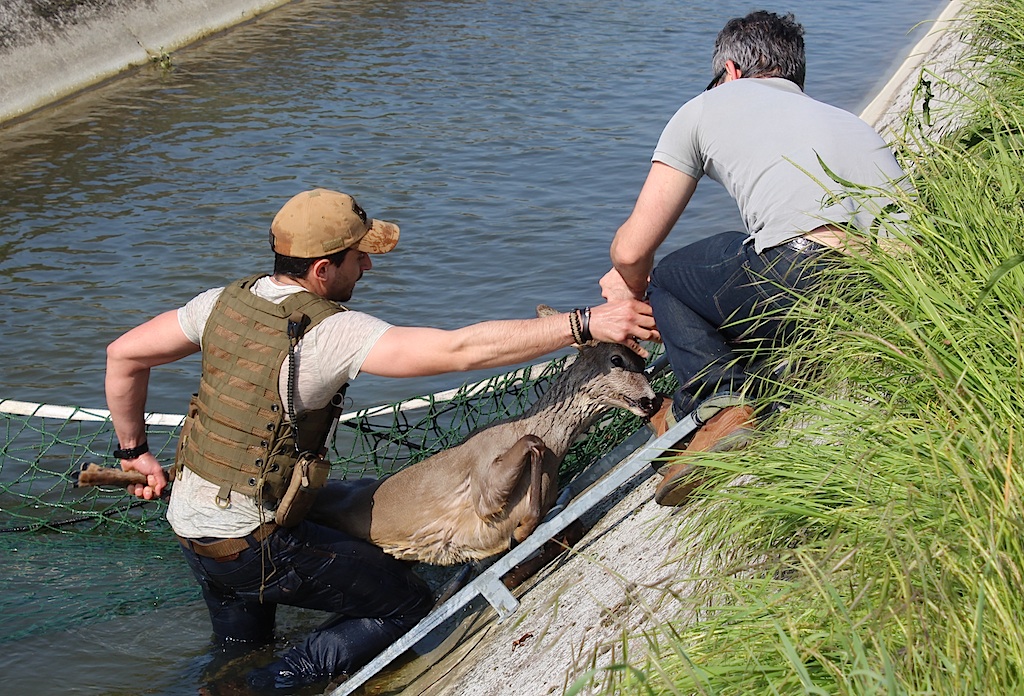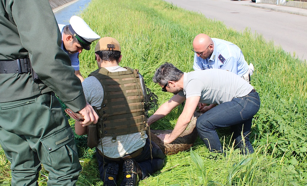 CASALMAGGIORE – Era ormai stremato, e non ha opposto grandissima resistenza quando uno dei due uomini incaricati del recupero è sceso in acqua per portarlo a riva. Era da almeno un ora e mezzo che era lì, il corpo nell’acqua della canalina, ormai fermo ad attendere. Un recupero in piena emergenza quello che stamattina ha visto coinvolti gli uomini della polizia municipale di Casalmaggiore, un mezzo attrezzato del Centro Recupero Caprioli giunto dal parmense e le GEV in zona Baslenga, nella canalina che costeggia via Cesare Pavese. Esperti all’opera: garantita per mezzo di una rete fissata alla parete del manufatto per l’irrigazione un approdo sicuro e calata la scala per la risalita, uno dei due uomini del centro recupero è sceso all’interno afferrando l’esemplare per le corna e le zampe. Un intervento rischioso sia per chi lo compie che per l’animale, eseguito con grande maestria. L’esemplare di capriolo è stato poi trasportato in piena golena, e rilasciato – verificate le condizioni, fisicamente provato ma integro – a correre libero. L’intervento si è concluso poco prima delle 11. Capita sempre più spesso che esemplari di capriolo, in cerca di cibo, si spingano sino ai margini dell’area urbana finendo poi nelle canaline, vere e proprie trappole per gli ungulati che difficilmente, soprattutto se in presenza d’acqua, riescono a risalire le ripide pareti. Questa volta, grazie alla segnalazione di un residente che ha avvertito subito i vigili e all’abilità degli uomini intervenuti, il capriolo è stato recuperato. Bambi è tornato in golena. Una brutta esperienza per lui, conclusasi nella maniera migliore.