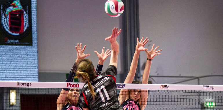 Vbc Pomì: Peric, Sirressi (L), Turlea 5, Gibbemeyer 9, Bosetti 8, Guerra 7, Fabris 1, Stevanovic 7, Tirozzi 8. Non entrate: Bacchi, Zuleta, Lloyd, Gibertini (L). All. Caprara-Bolzoni