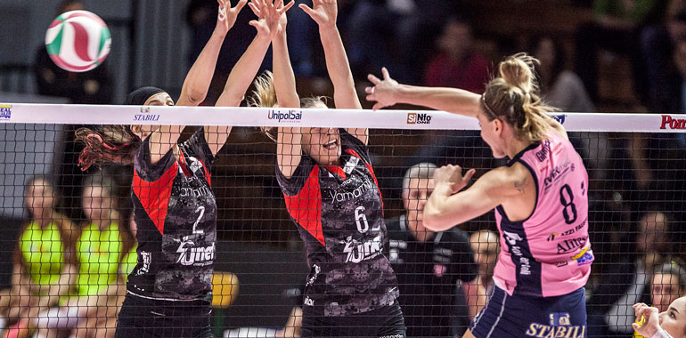 Unet Yamamay: Stufi 12, Signorile 4, Spirito (L), Fiorin 4, Vasilantonaki 16, Diouf 12, Moneta, Berti 12, Negretti. Non entrate: Cialfi, Witkowska (L), Martinez, Badini, Pisani. All. Mencarelli-Musso