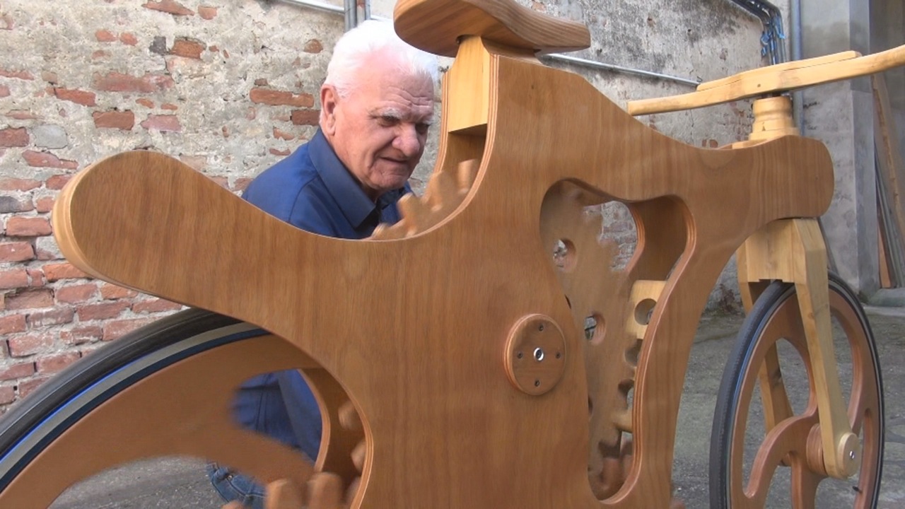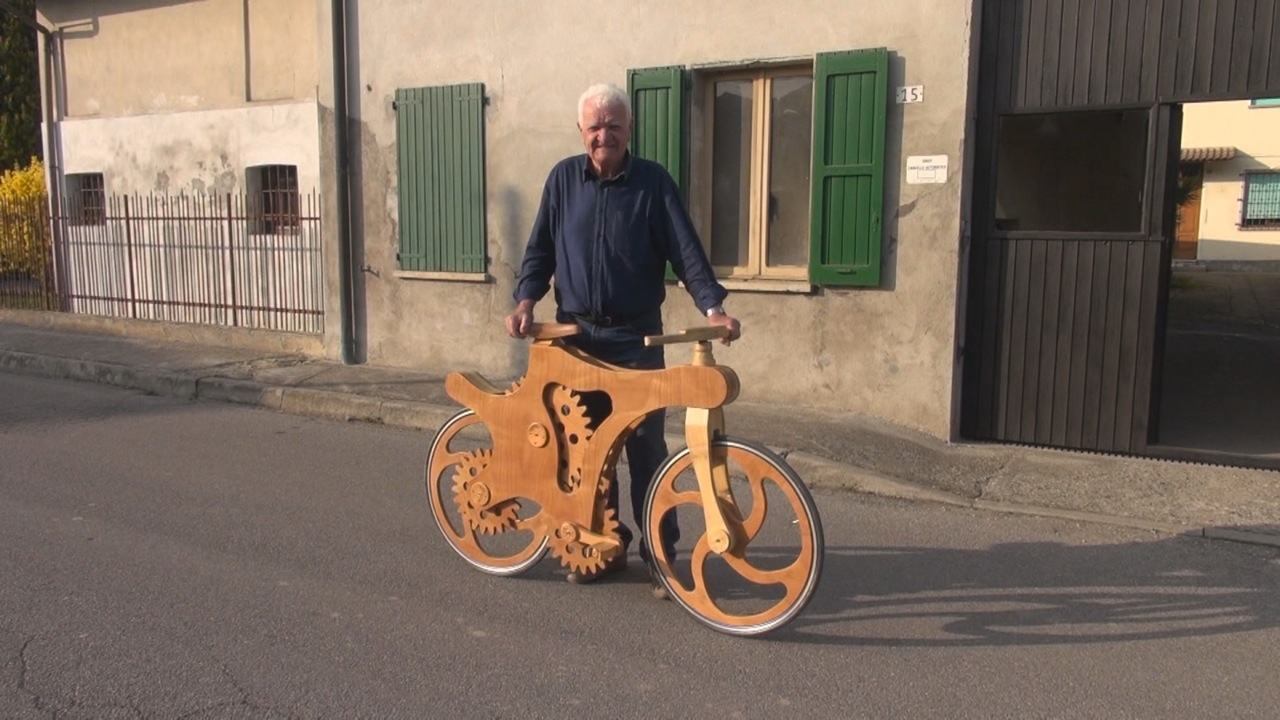 Romano Meloni, a Motta il 'Leonardo Da Vinci' che costruisce bici in legno