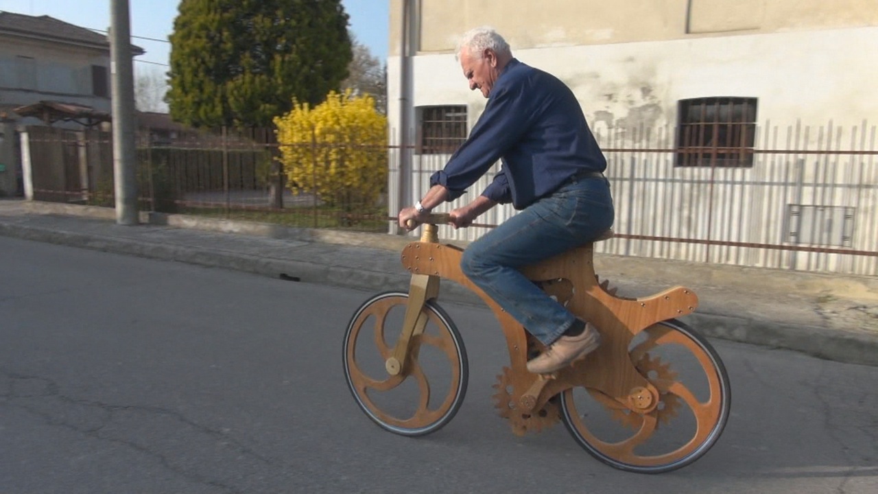 Prima il bozzetto, ripreso da antichi progetti. Poi la messa in opera, con selezione del legno adatto e accorgimenti quotidiani utili a rendere viva la creazione. L’orgoglio di Meloni, più della riproduzione leonardesca, è l’ultimo gioiello, svelato nel 2017, ottava bellezza di una collezione che il falegname di Motta Baluffi non ha intenzione di metter in vendita: “Ho già detto di no a persone che mi offrivano anche migliaia di euro”. La neonata ha una caratteristica che la rende unica: “Si tratta di una bicicletta che rappresenta un unicum nel suo genere perché non ha catena metallica. Per muoversi sfrutta ingranaggi in legno realizzati grazie all’aiuto di due ragazzi in grado di disegnarne i dettagli al computer”.