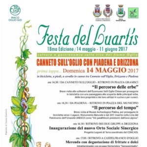 Fervono i preparativi per la prima delle cinque tappe della Festa del Luartis 2017, che si terrà il 14 maggio. Partenza di due percorsi, delle erbe e del tempo, da Canneto e Piadena. Poi ritrovo a Castelfranco d'Oglio