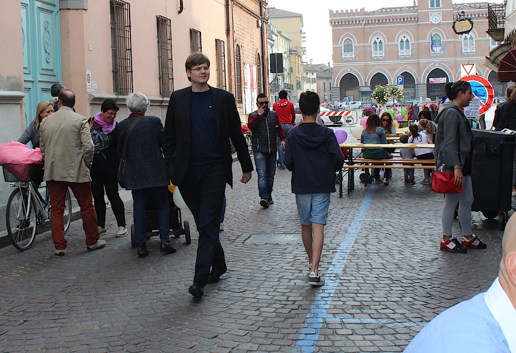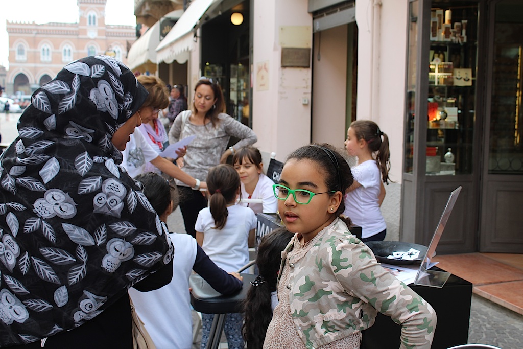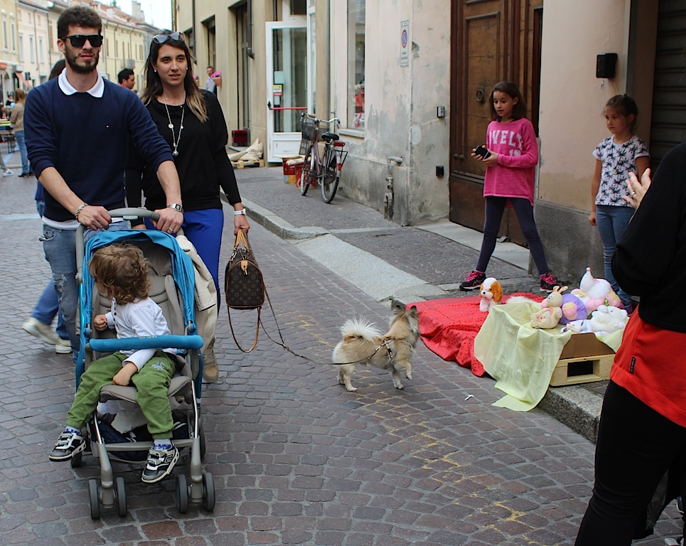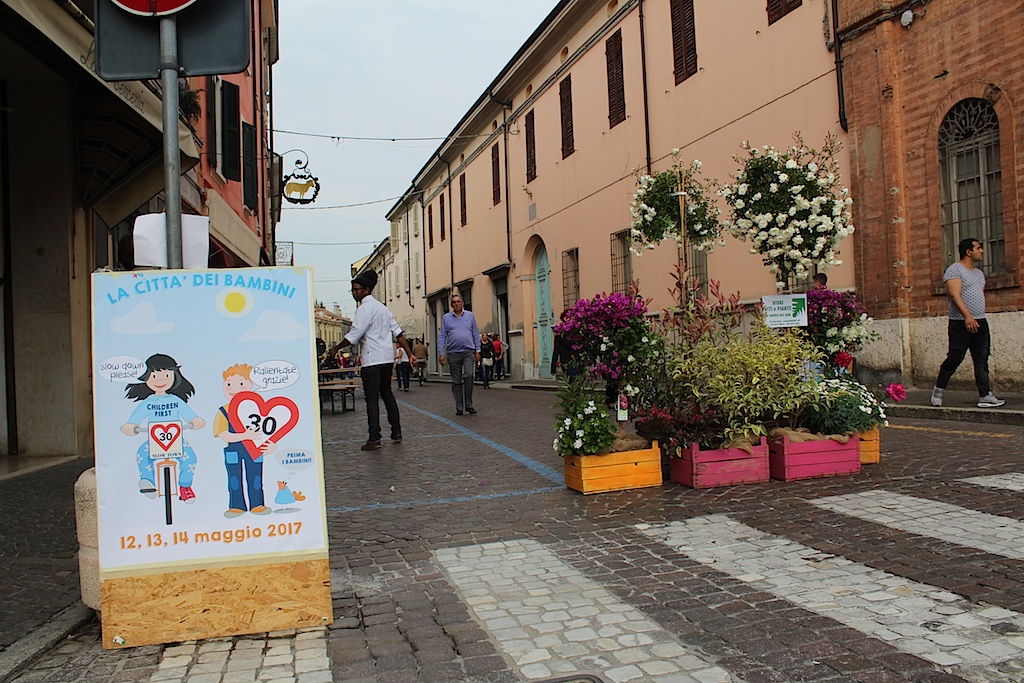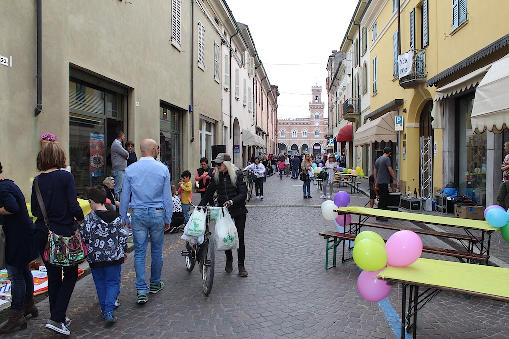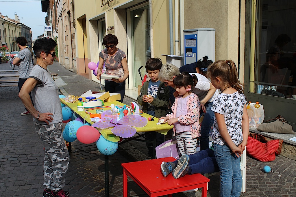 Mercatino, il giocoliere, il truccabimbi, le bolle di sapone. E poi pizza, focaccia e cioccolato, la musica, la birra, il laboratorio delle sagome stradali. Quattro ore in cui via Cavour – sì la via Cavour dalla ciclabile troppo stretta e dalle auto in continua corsa – si è trasformata in un strada accogliente e gioiosa. Anche il sindaco Filippo Bongiovanni, come il capogruppo d’opposizione Pierluigi Pasotto, vi si sono immersi toccando con mano cosa significa, a fronte di un investimento irrisorio, realizzare qualcosa in grado di divertire tutti, di far reincontrare le persone, di far giocare i bambini e di fare qualcosa per il commercio.