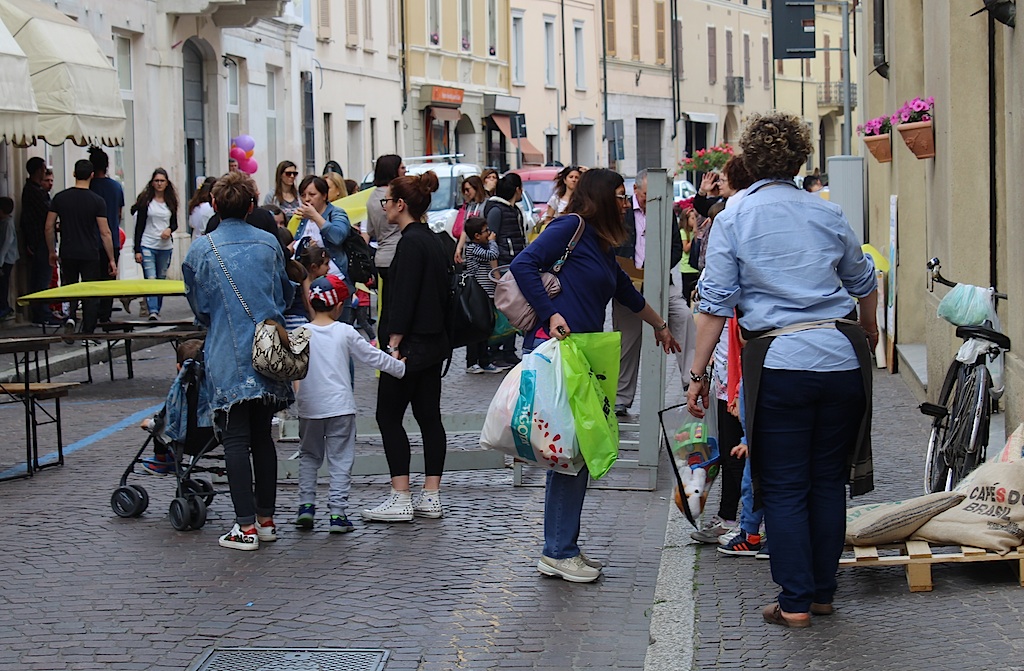 Mercatino, il giocoliere, il truccabimbi, le bolle di sapone. E poi pizza, focaccia e cioccolato, la musica, la birra, il laboratorio delle sagome stradali. Quattro ore in cui via Cavour si è trasformata in un strada accogliente e gioiosa.