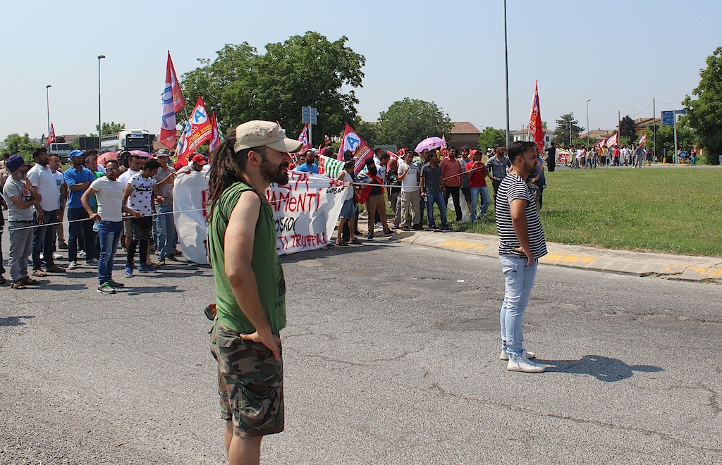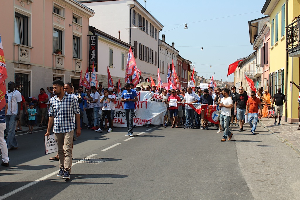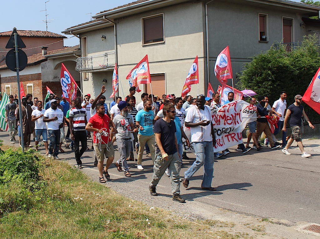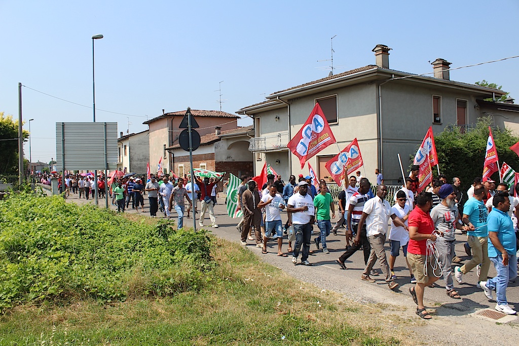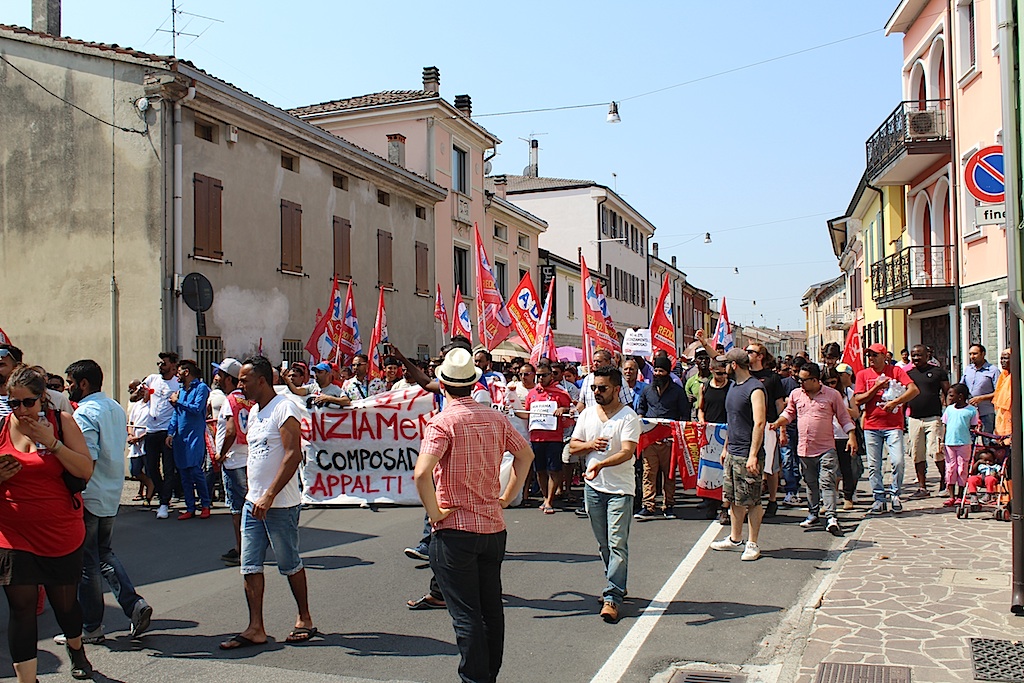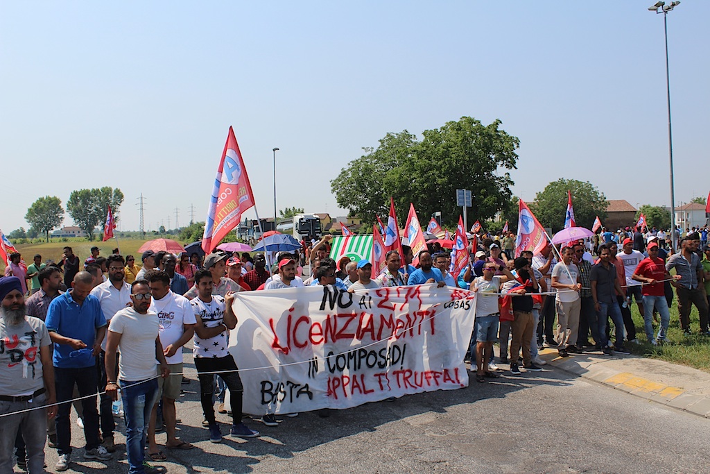 VIADANA – Il corteo, sotto il sole con 35 gradi di caldo, era iniziato con la consegna di una fotocopia contenente la denuncia indirizzata al Tribunale di Mantova, Procura, Finanza, al Ministero dello Sviluppo economico e altri organi coinvolti per sottolineare la pesantissima situazione economico finanziaria della Facchini Viadana. Con comportamenti omissivi dell’organo di controllo e di revisione che ha accettato in modo palesemente ancillare l’operato dell’Amministratore e dell’organo di vigilanza (così è scritto nella denuncia), auspicando a questo punto la nomina di un ispettore o commissario ministeriale ad hoc. Oltre alla pesantissima denuncia tutta la mattinata è trascorsa al grido degli slogan urlati (anche dai bambini appresso alle famiglie) al megafono con “Tocchi uno, tocchi tutti, ladri ladri, restituiteci i nostri diritti, ricordando di avere lasciato nelle casse dell’azienda in dieci anni più di 4 mila euro a testa attraverso rinunce e sacrifici. L’associazione di Mantova Equal attraverso il rappresentante Mario Rossi ha auspicato di mettere in campo addirittura l’esproprio dell’azienda per dare l’impianto ad una cooperativa di lavoratori. A parte i due momenti più critici (alla partenza quando si era manifestata l’intenzione di sfondare lo sbarramento della Polizia con le donne e i bambini ) e all’arrivo davanti ai cancelli sbarrati della Composad, per il resto la manifestazione non ha registrato incidenti. Anche le Forze dell’Ordine, c’erano anche i Carabinieri e la Polizia locale oltre alla celere, hanno tenuto un comportamento di tolleranza nei confronti del blocco stradale effettuato, per pochi minuti, all’altezza della rotonda della Gerbolina, con molti mezzi in coda verso mezzogiorno. Poi tutto si è concluso con l’offerta di riso e lenticchie offerto dal popolo indiano che durante il corteo aveva pure distribuito centinaia di bottiglie di acqua fresca. Alla fine del corteo Stefano Re dei Cobas ha annunciato di aver ricevuto un messaggio da Lega Coop per una convocazione urgente nel primo pomeriggio nella sede di Mantova.