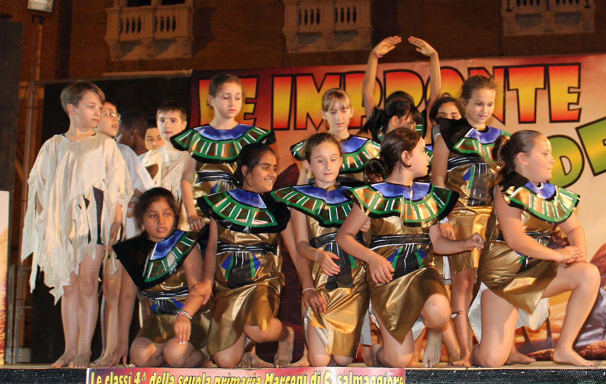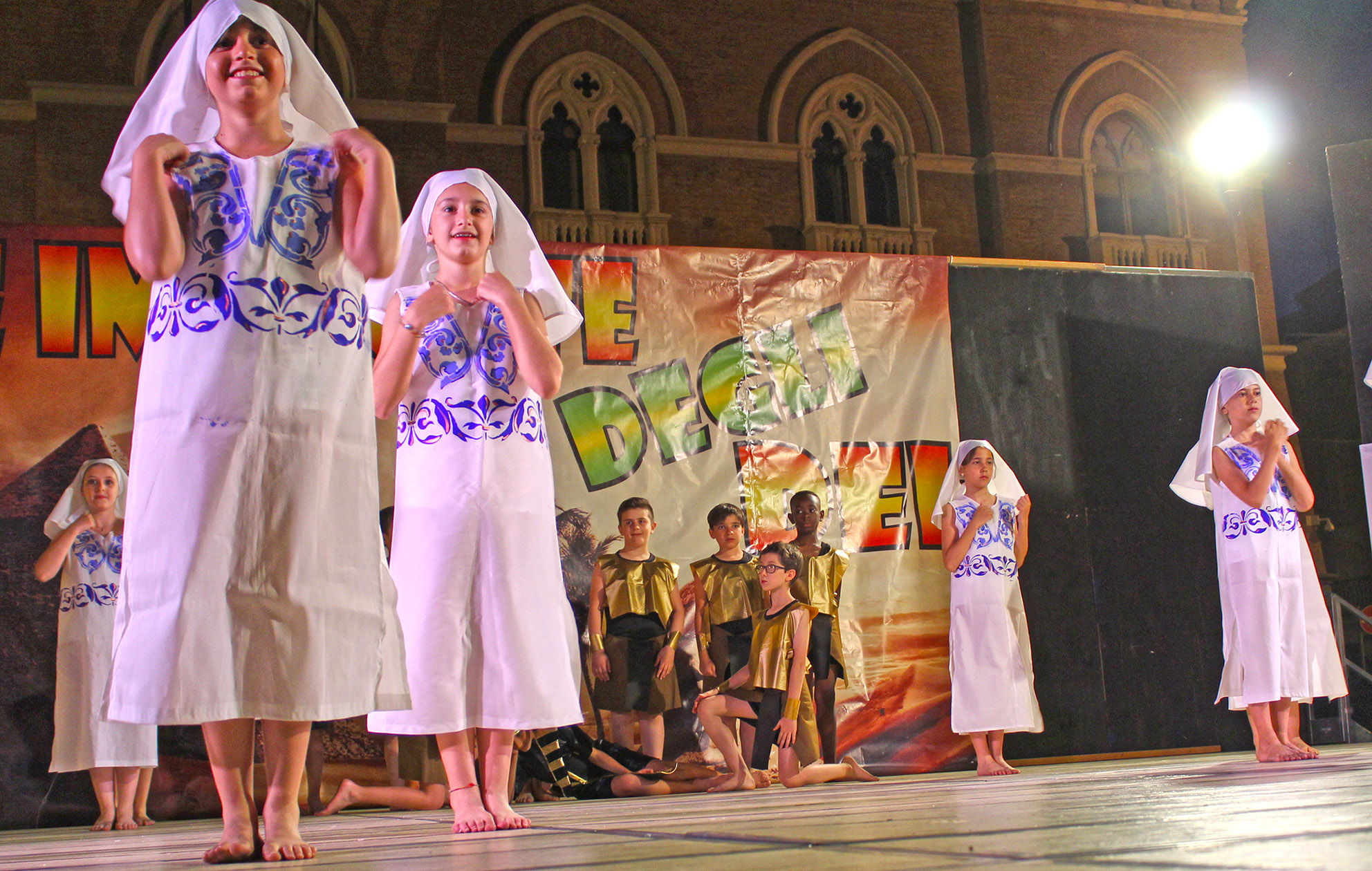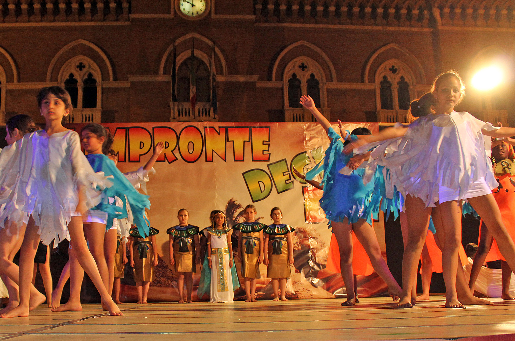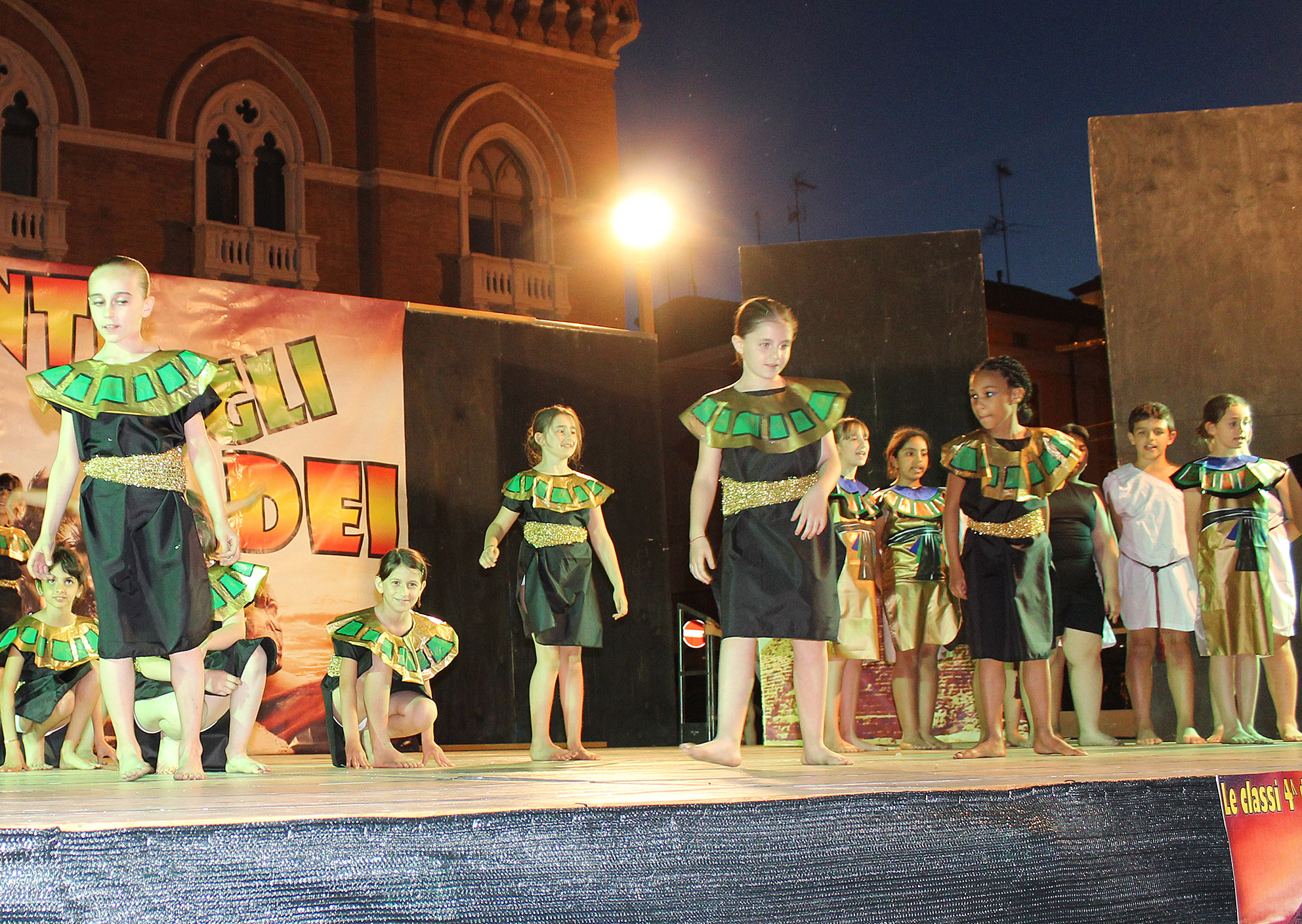 CASALMAGGIORE – L’affascinante mondo degli antichi egizi come tema dello spettacolo portato in piazza dalle classi quarte della scuola primaria Marconi di Casalmaggiore. Ieri sera, di fronte ad una buona cornice di pubblico è andato in scena “Le impronte degli Dei”, spettacolo allestito dalla bravissima Luisa Sartori al termine del progetto didattico da lei portato a termine nell’istituto e dalle sue collaboratrici di Dance Academy, con l’intenso lavoro del corpo docenti dell’istituto scolastico. Tutto, dall’allestimento scenico, ai costumi, alle coreografie è stato frutto dell’impegno di tutti. I costumi sono stati disegnati a mano da una delle insegnanti. Un’ora e mezza tra il racconto della voce fuori campo, dalle origini della cultura egizia sino a Cleopatra insieme ai balletti e alla musica che ha spaziato da arie d’opera a canti per bambini sino al pop contemporaneo. I bambini sul palco sono stati splendidi protagonisti. E vada per le bambine, alcune con conoscenza di danza e di ginnastica artistica, ma la sorpresa sono stati i ragazzini, calciatori, giocatori di basket o di playstation trasformatisi in ballerini. Uno spettacolo di fine anno di qualità, armonioso e ben curato. Unico appunto: la gente (nonni e nonne comprese) ha dovuto seguire tutta in piedi l’intero spettacolo. Piazzare le sedie non sarebbe stato un male. Una quisquilia se vogliamo all’interno di un momento comunque positivo che ha unito la città alla sua scuola in maniera bella, ed istruttiva.