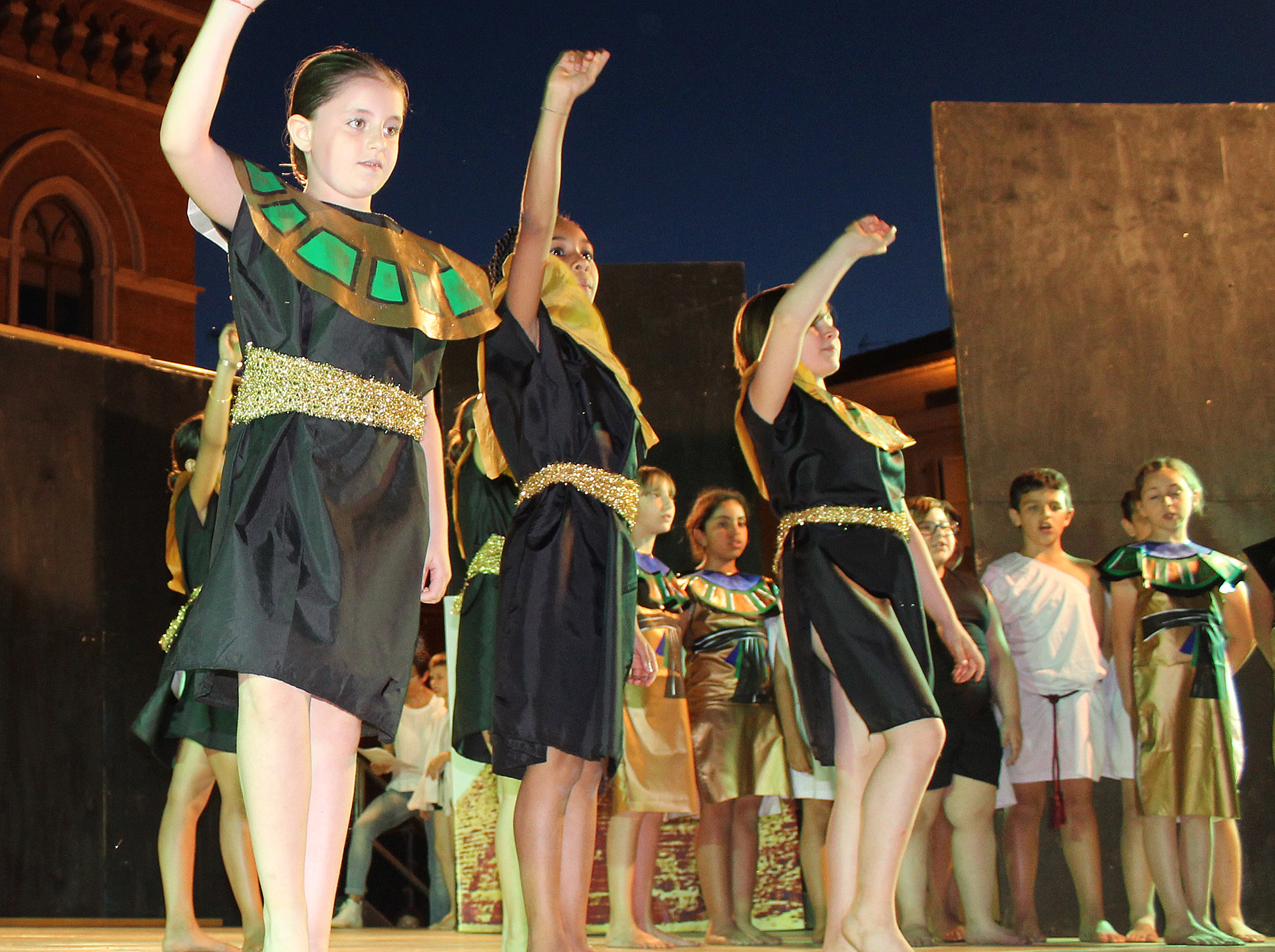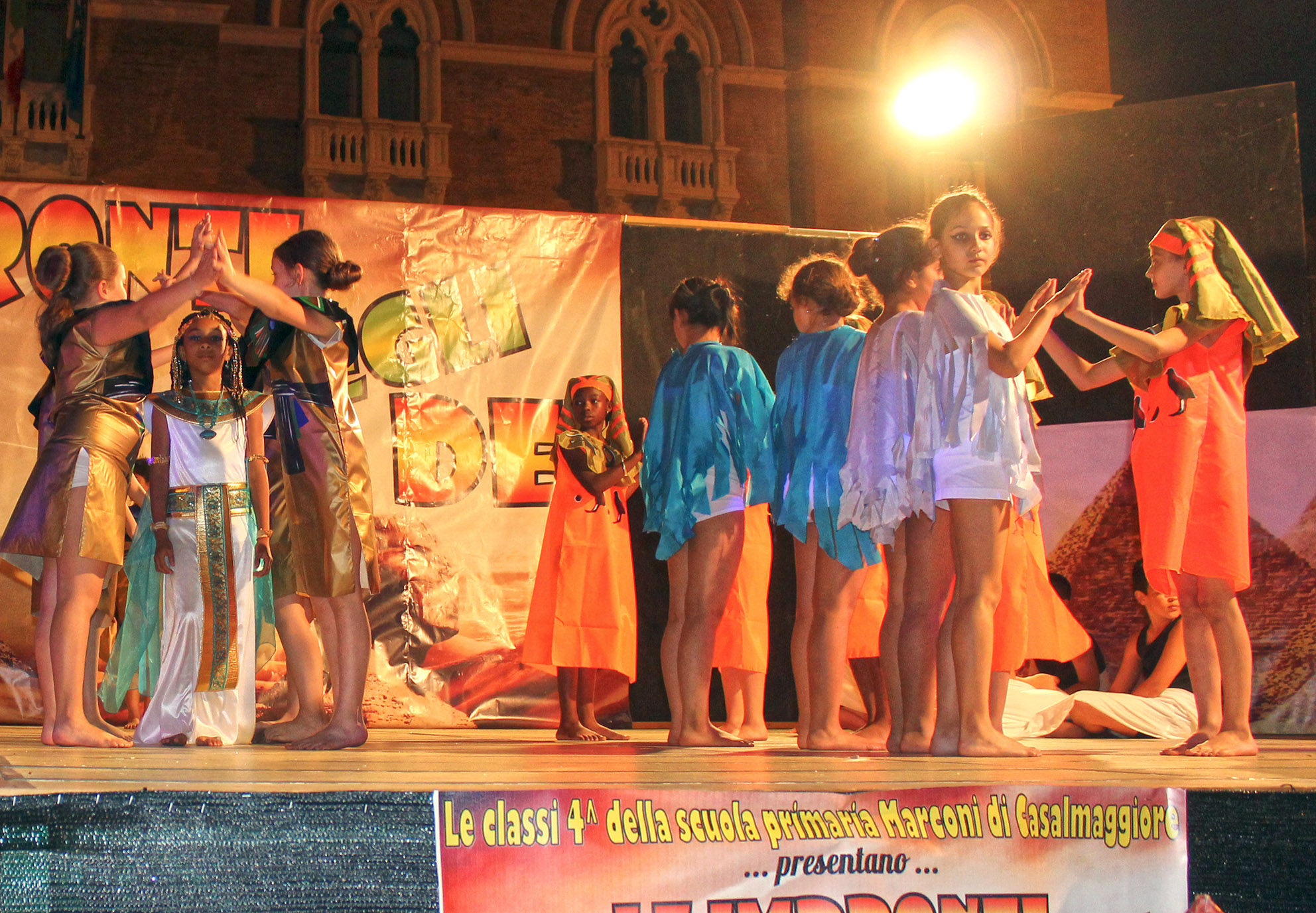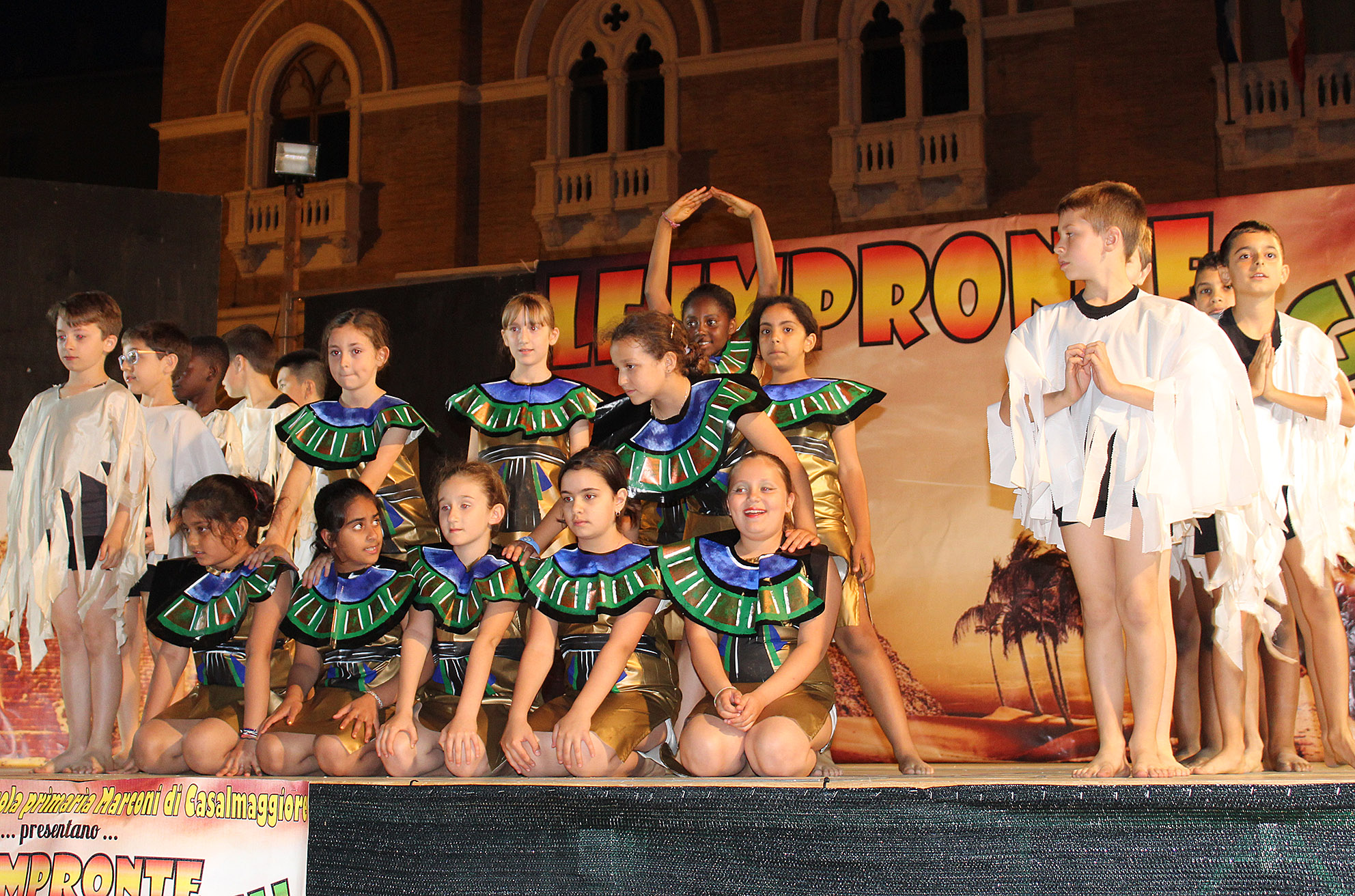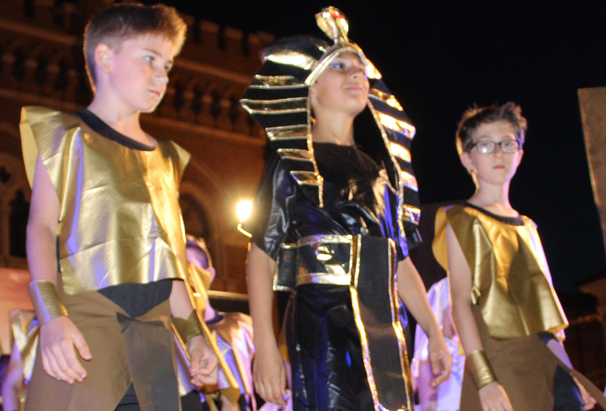 CASALMAGGIORE – L’affascinante mondo degli antichi egizi come tema dello spettacolo portato in piazza dalle classi quarte della scuola primaria Marconi di Casalmaggiore. Ieri sera, di fronte ad una buona cornice di pubblico è andato in scena “Le impronte degli Dei”, spettacolo allestito dalla bravissima Luisa Sartori al termine del progetto didattico da lei portato a termine nell’istituto e dalle sue collaboratrici di Dance Academy, con l’intenso lavoro del corpo docenti dell’istituto scolastico. Tutto, dall’allestimento scenico, ai costumi, alle coreografie è stato frutto dell’impegno di tutti. I costumi sono stati disegnati a mano da una delle insegnanti. Un’ora e mezza tra il racconto della voce fuori campo, dalle origini della cultura egizia sino a Cleopatra insieme ai balletti e alla musica che ha spaziato da arie d’opera a canti per bambini sino al pop contemporaneo. I bambini sul palco sono stati splendidi protagonisti. E vada per le bambine, alcune con conoscenza di danza e di ginnastica artistica, ma la sorpresa sono stati i ragazzini, calciatori, giocatori di basket o di playstation trasformatisi in ballerini. Uno spettacolo di fine anno di qualità, armonioso e ben curato. Unico appunto: la gente (nonni e nonne comprese) ha dovuto seguire tutta in piedi l’intero spettacolo. Piazzare le sedie non sarebbe stato un male. Una quisquilia se vogliamo all’interno di un momento comunque positivo che ha unito la città alla sua scuola in maniera bella, ed istruttiva.
