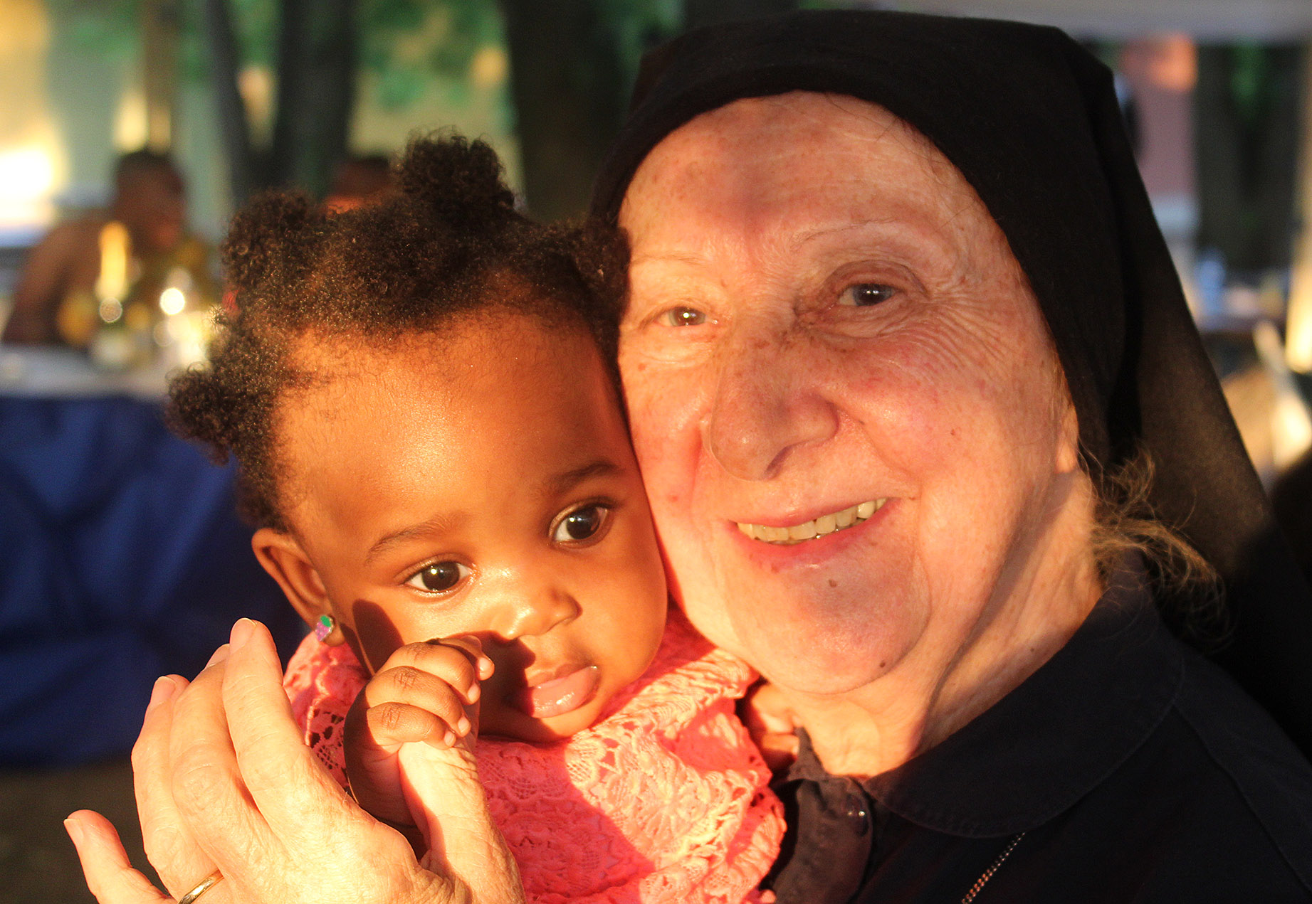 La festa classica, i nonni vestiti in costume tradizionale, i genitori come il giorno delle nozze. Si balla. Mariti con mogli, papà con i figli, da soli tra una portata e l’altra a rispondere al richiamo di qualcuno. C’è pure la danza dell’amore con il fazzoletto e suor Maria, oltre ad abbracciare un po’ tutti, si lancia in qualche passo di danza. “Tanti vengono da situazioni difficili – ci racconta – altri ancora sono nati qui. Sono persone che portano allegria e l’allegria è sempre un segno divino. Guarda quanti sorrisi, quanta voglia di vivere e di stare insieme”.