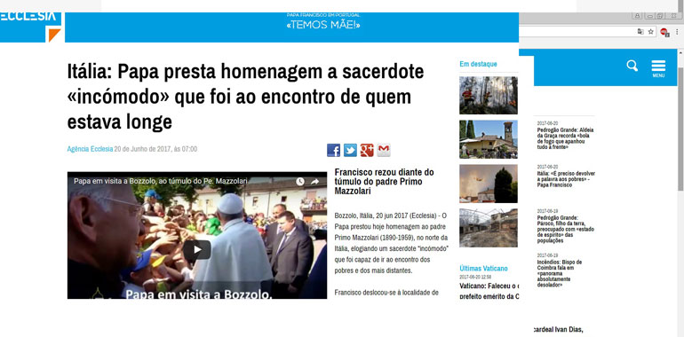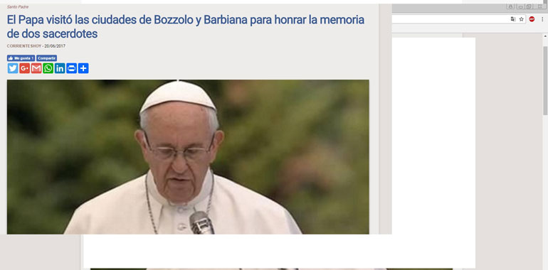 BOZZOLO – E’ stata una giornata storica non soltanto per la comunità di Bozzolo e la Diocesi di Cremona, ma anche per la Chiesa italiana e mondiale. La visita di Papa Francesco sulla tomba di Don Primo Mazzolari, e poi a Barbiana per Don Lorenzo Milani, ha fatto il giro del mondo. La notizia del Santo Padre è stata ripresa da numerosi siti internazionali, dall’americano Daily News al Daily Star libanese. “Il Papa onora i sacerdoti scomodi censurati per l’impegno verso i poveri”. Questa la sintesi dei titoli riportati dai media.
